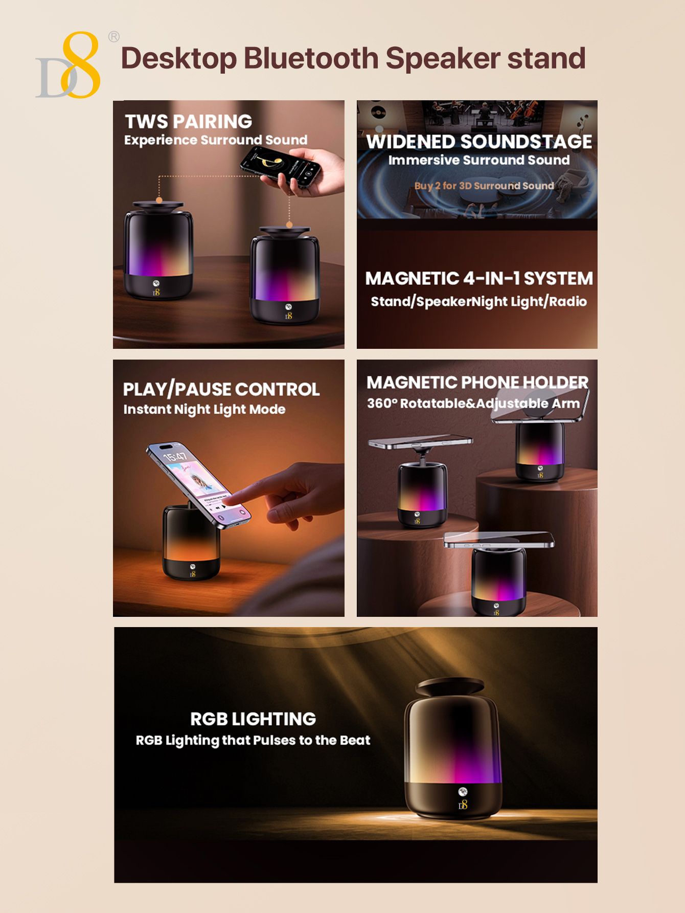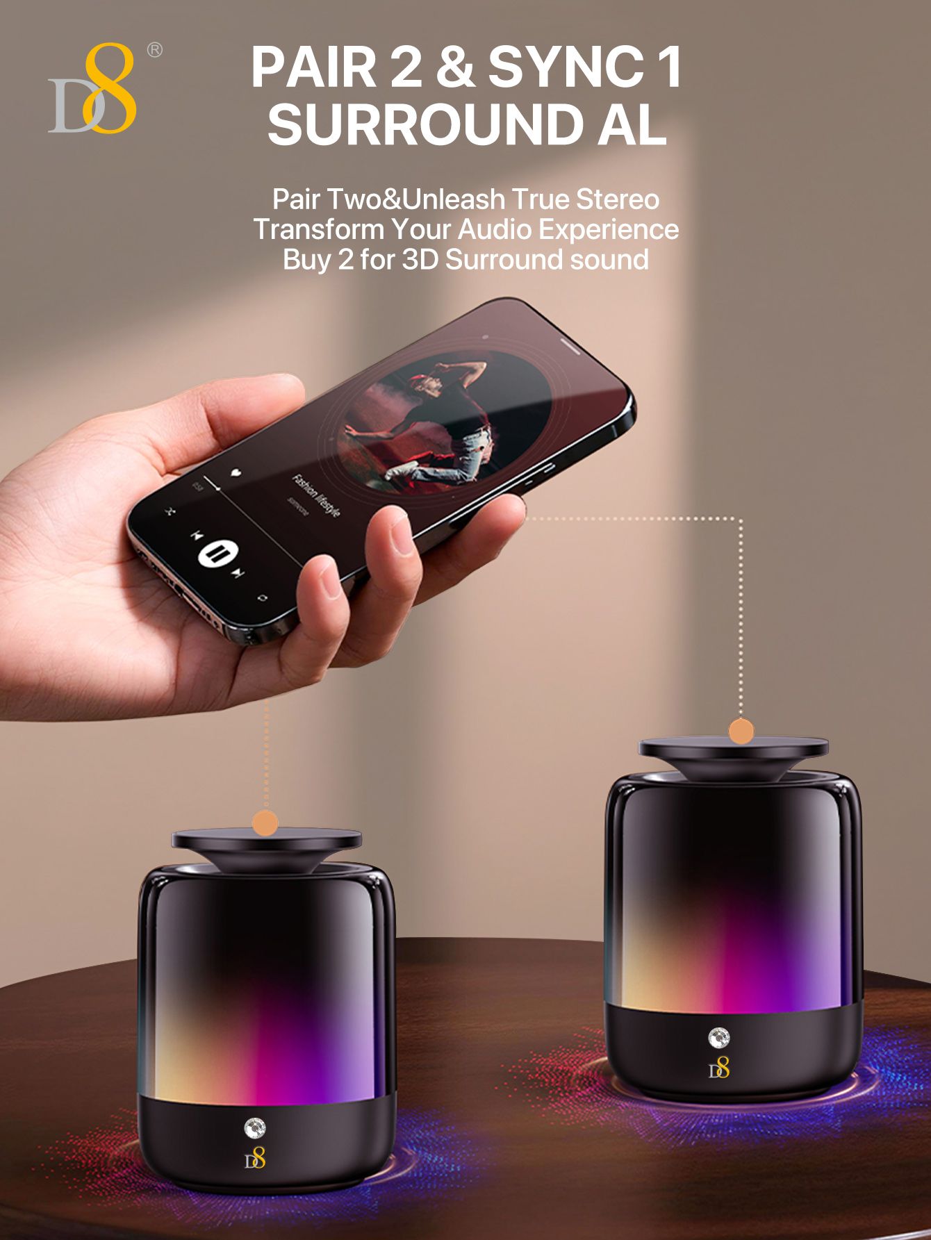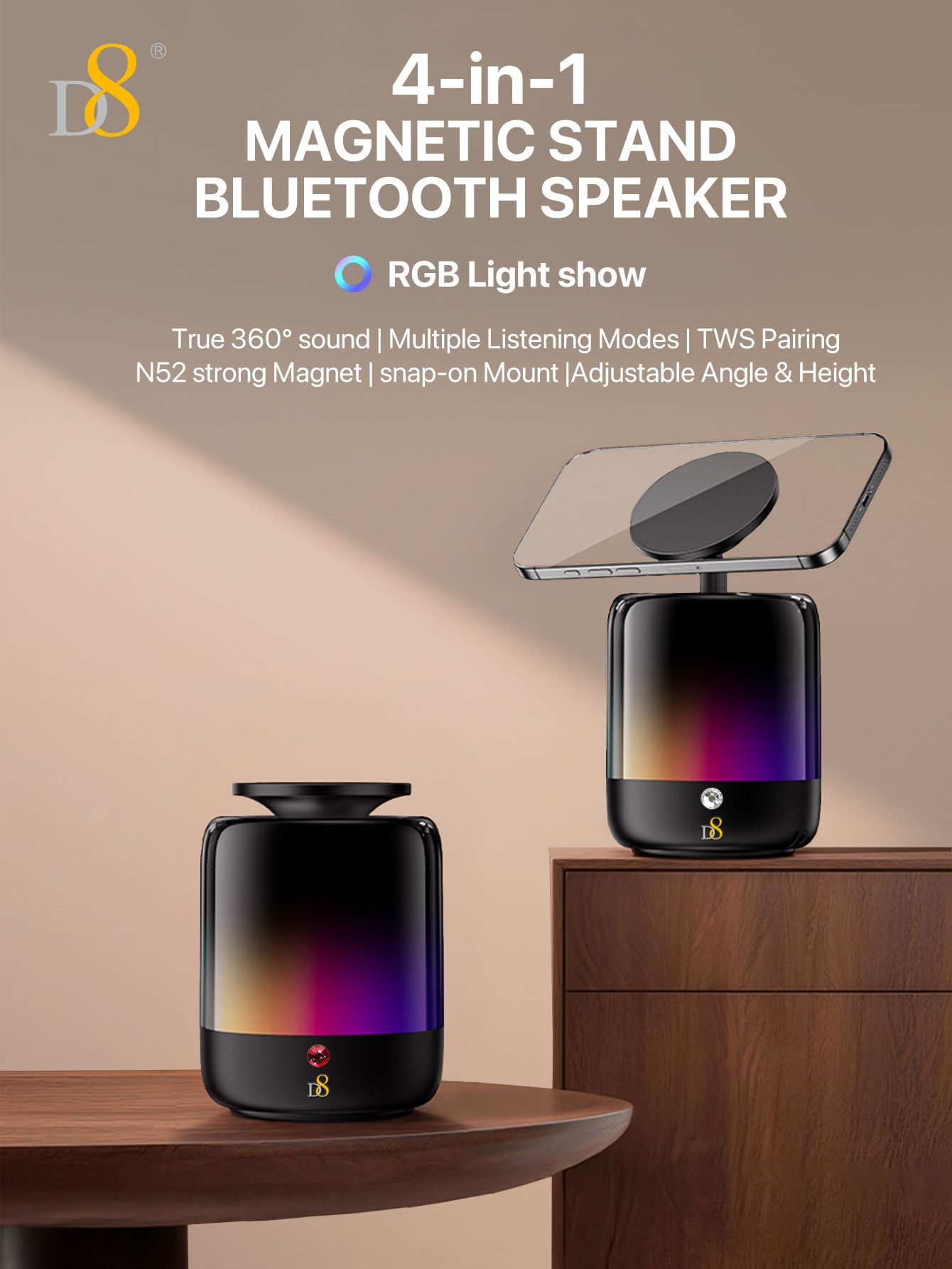 TWS 360° Sound Bluetooth Speaker with Adjustable Phone Stand