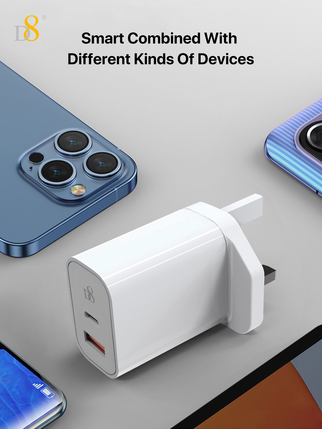 20W Dual-Port Fast Charger (USB-C + A, UK Plug)