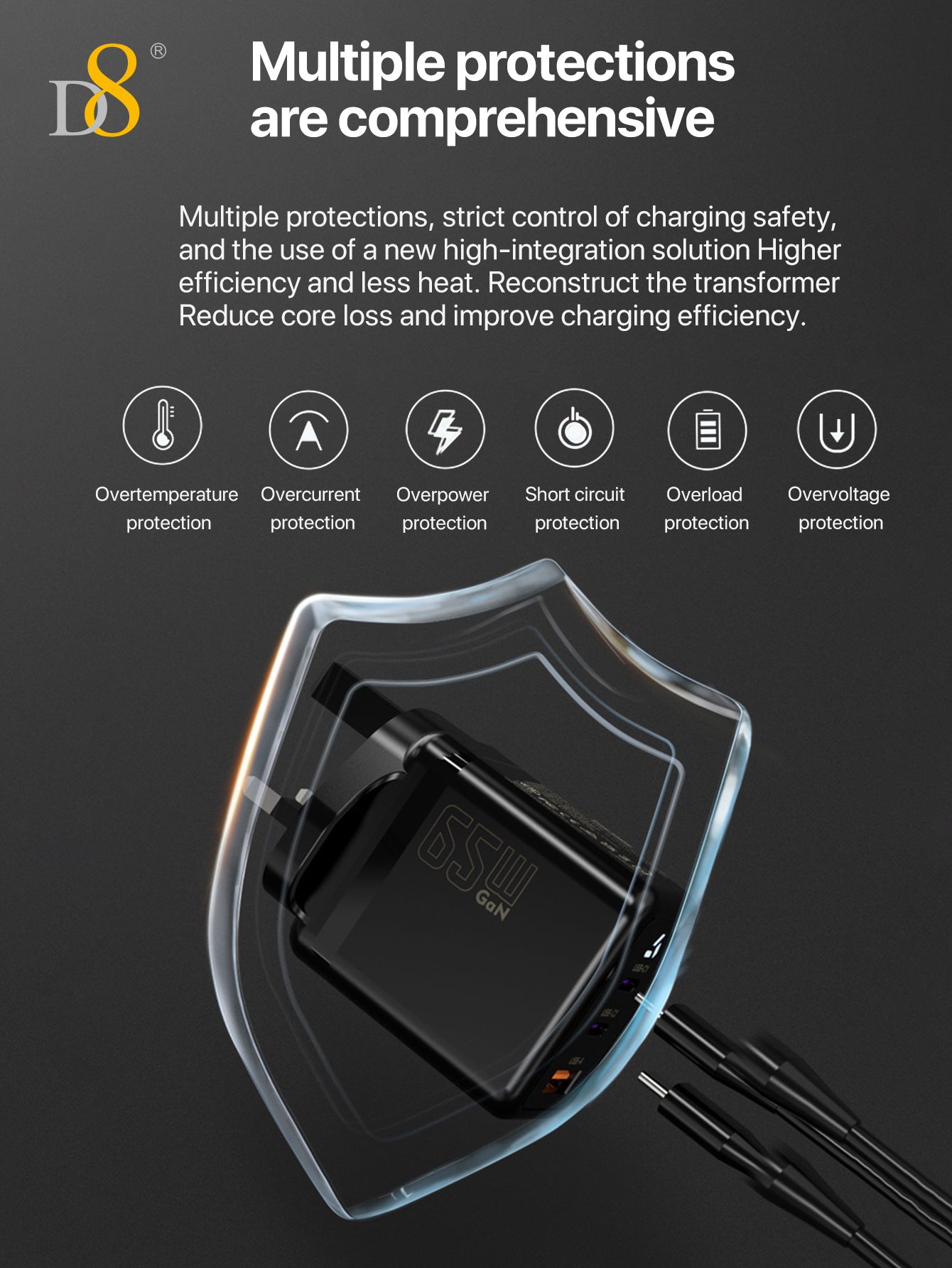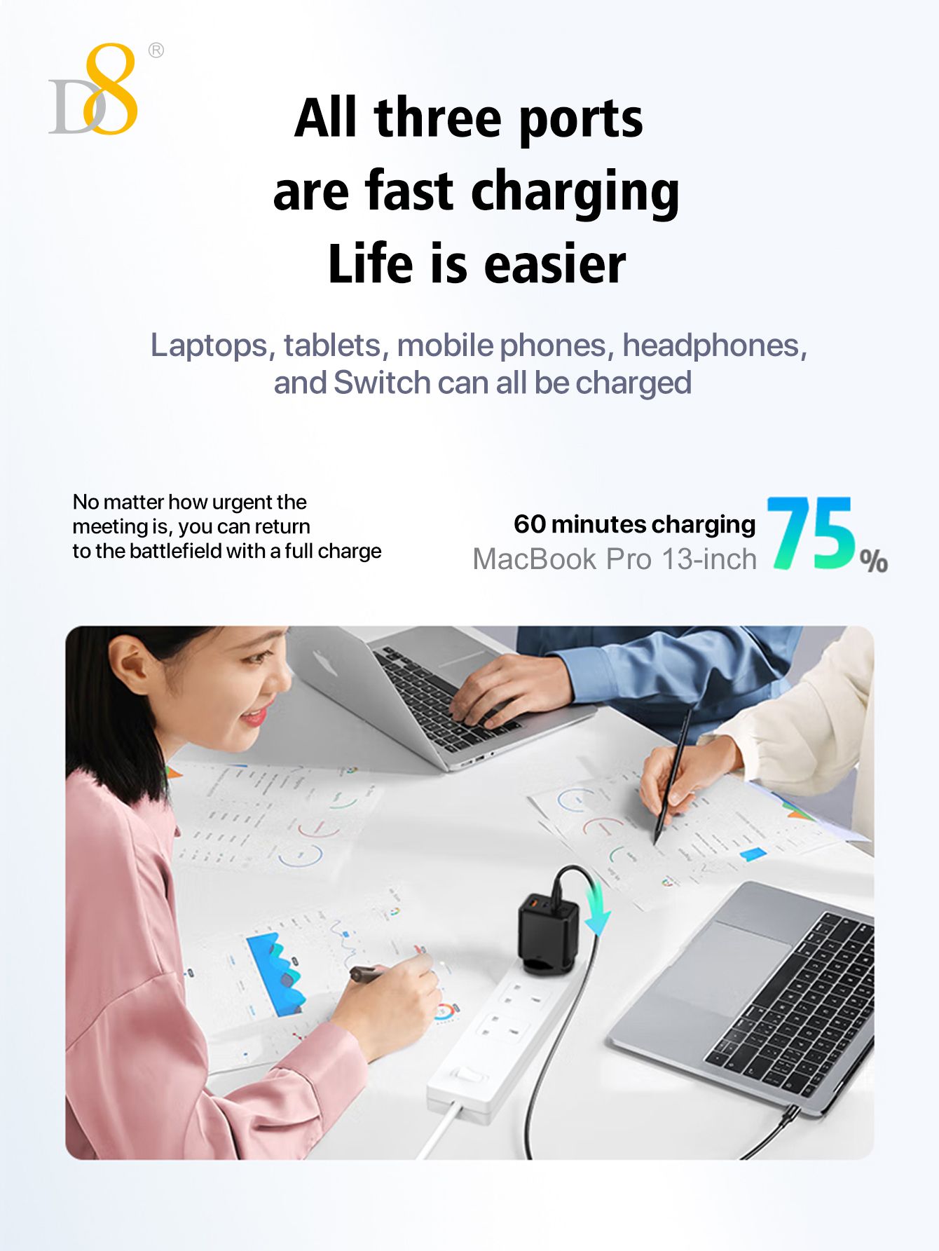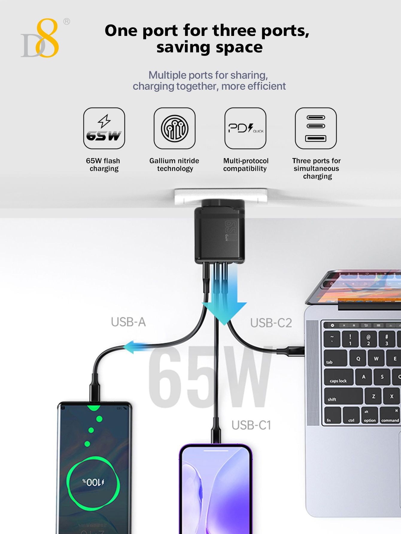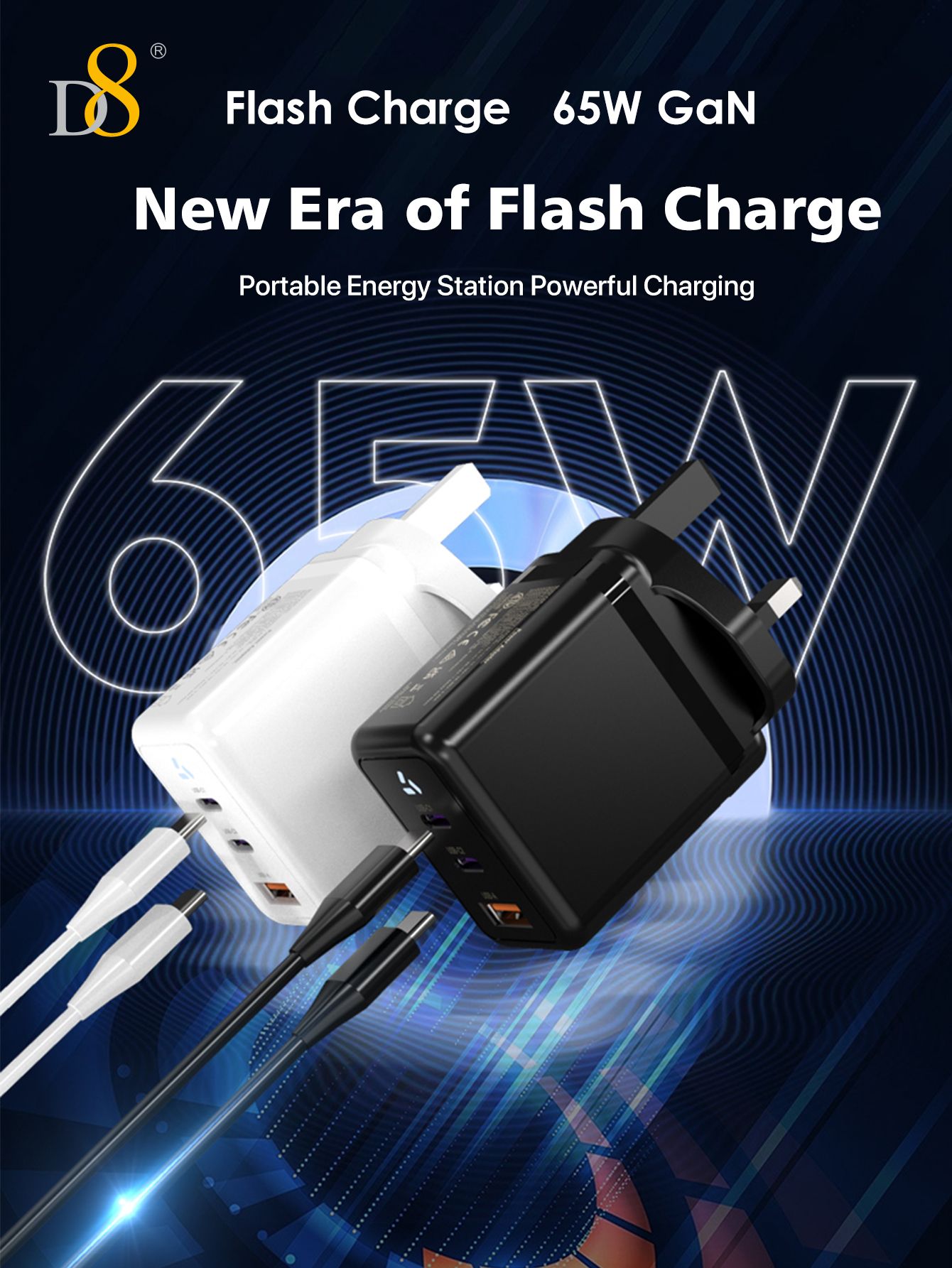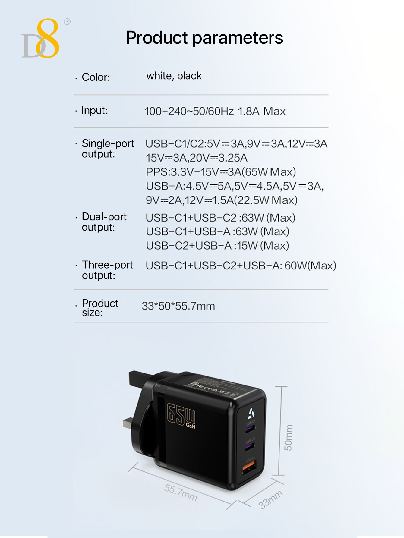 65W GaN 3-Port Fast Charger (2C1A, UK Plug)
