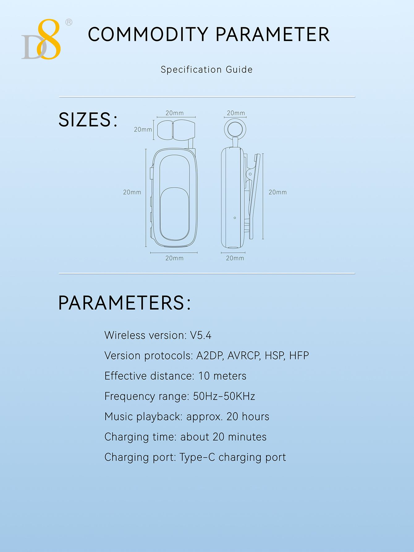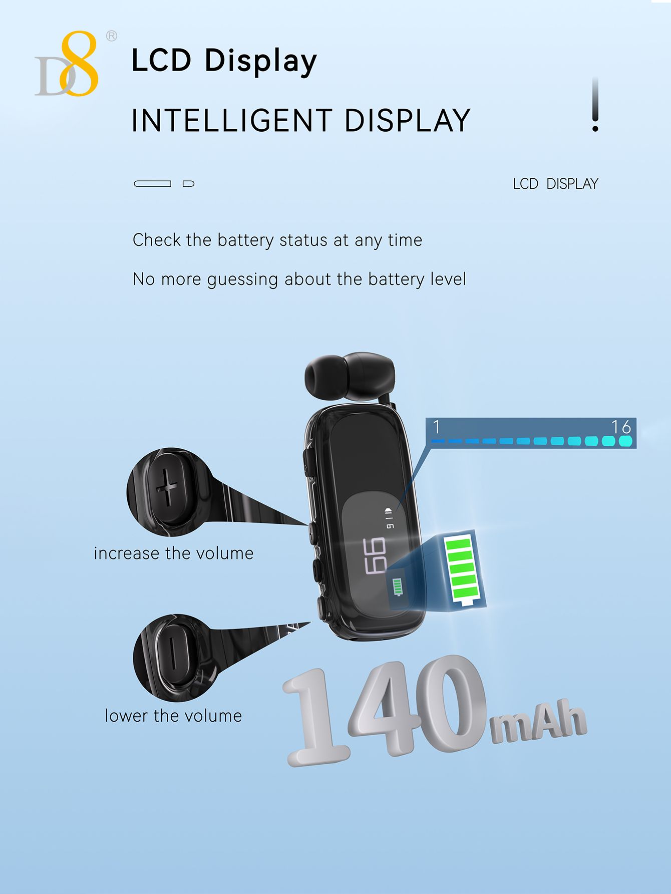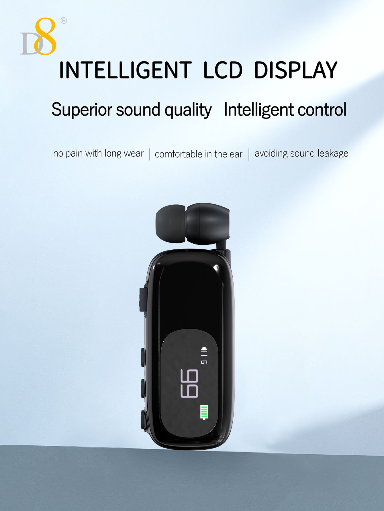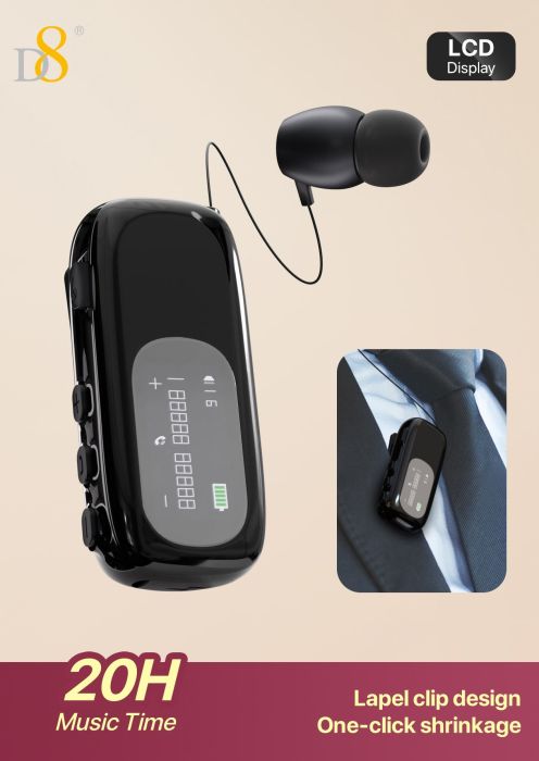 Bluetooth Collar Clip Headset (LCD Display, 20H Music Time, Lapel Clip Design, One-Click Shrinkage, Black)