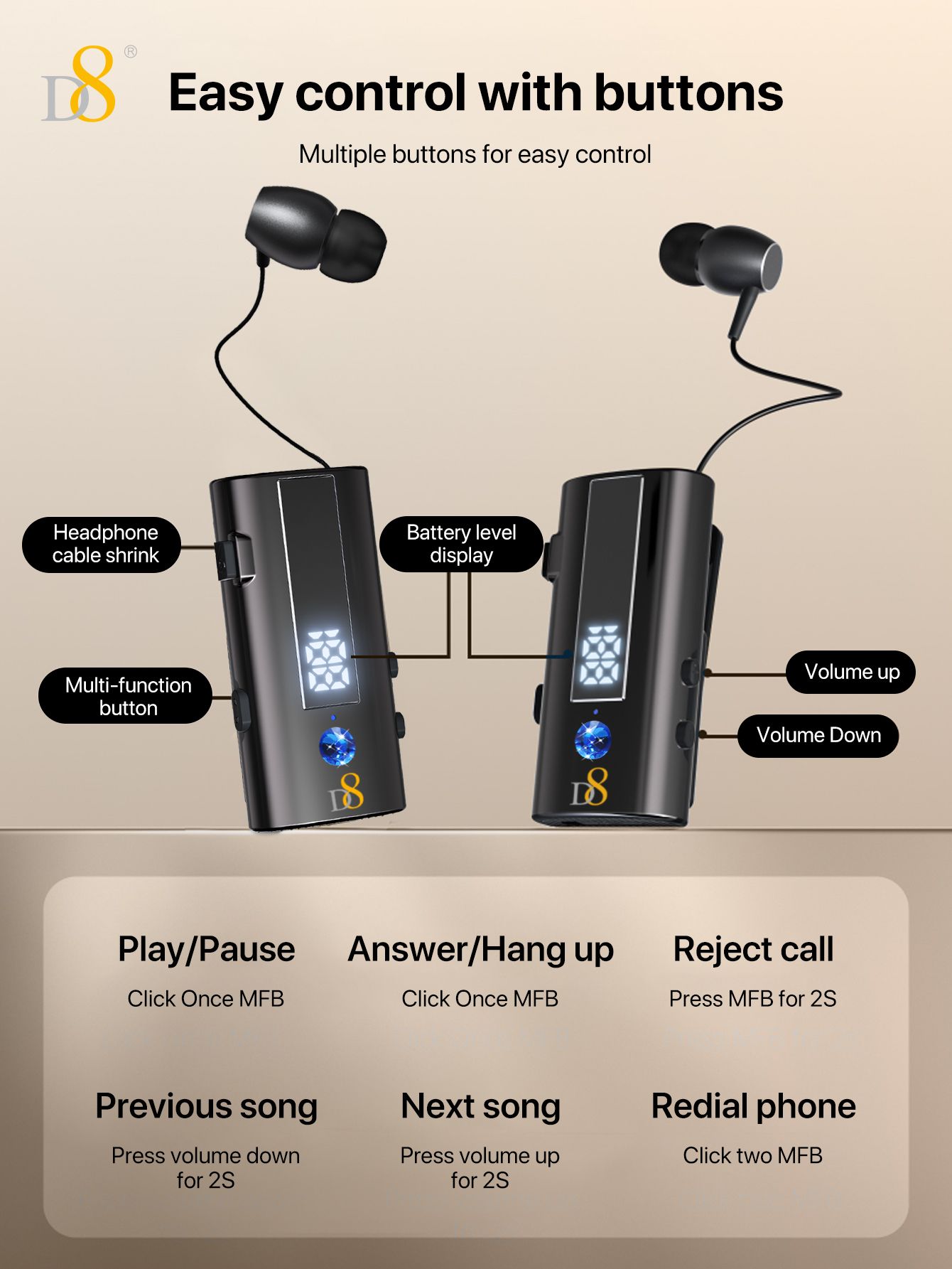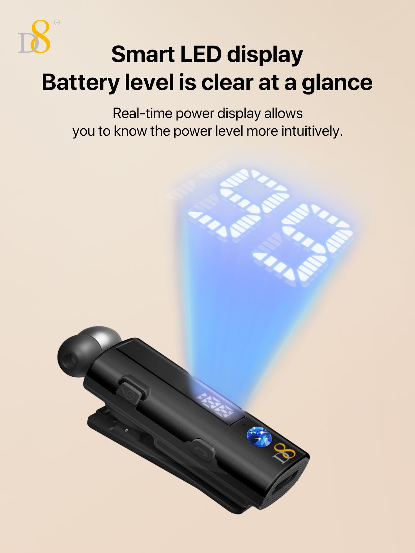Bluetooth Collar Clip Headset (50H Long Battery Life, Digital Battery Display, One-Touch Line Rewinding, Diamond Accents, Black)