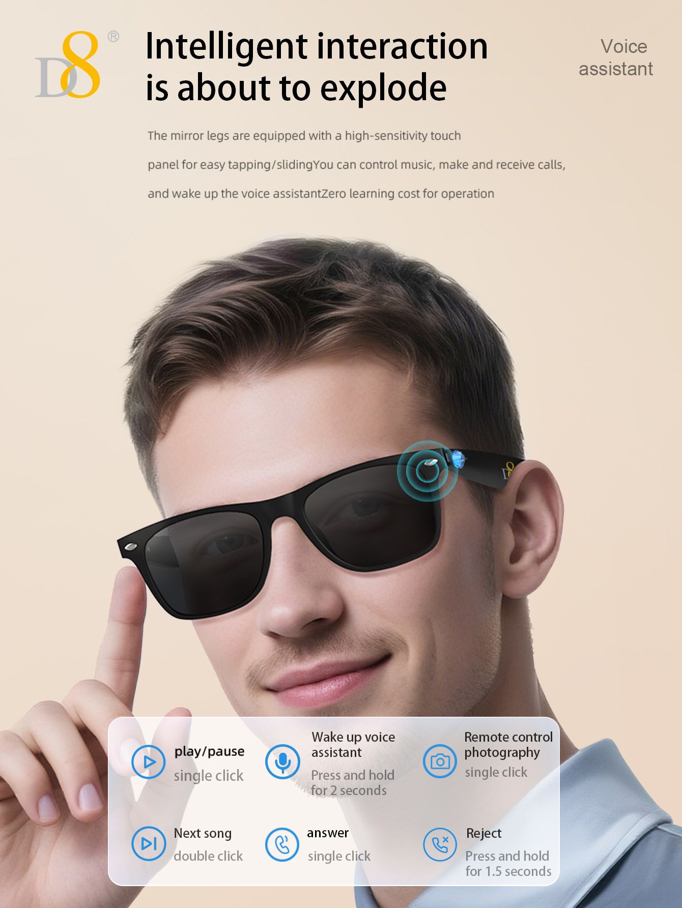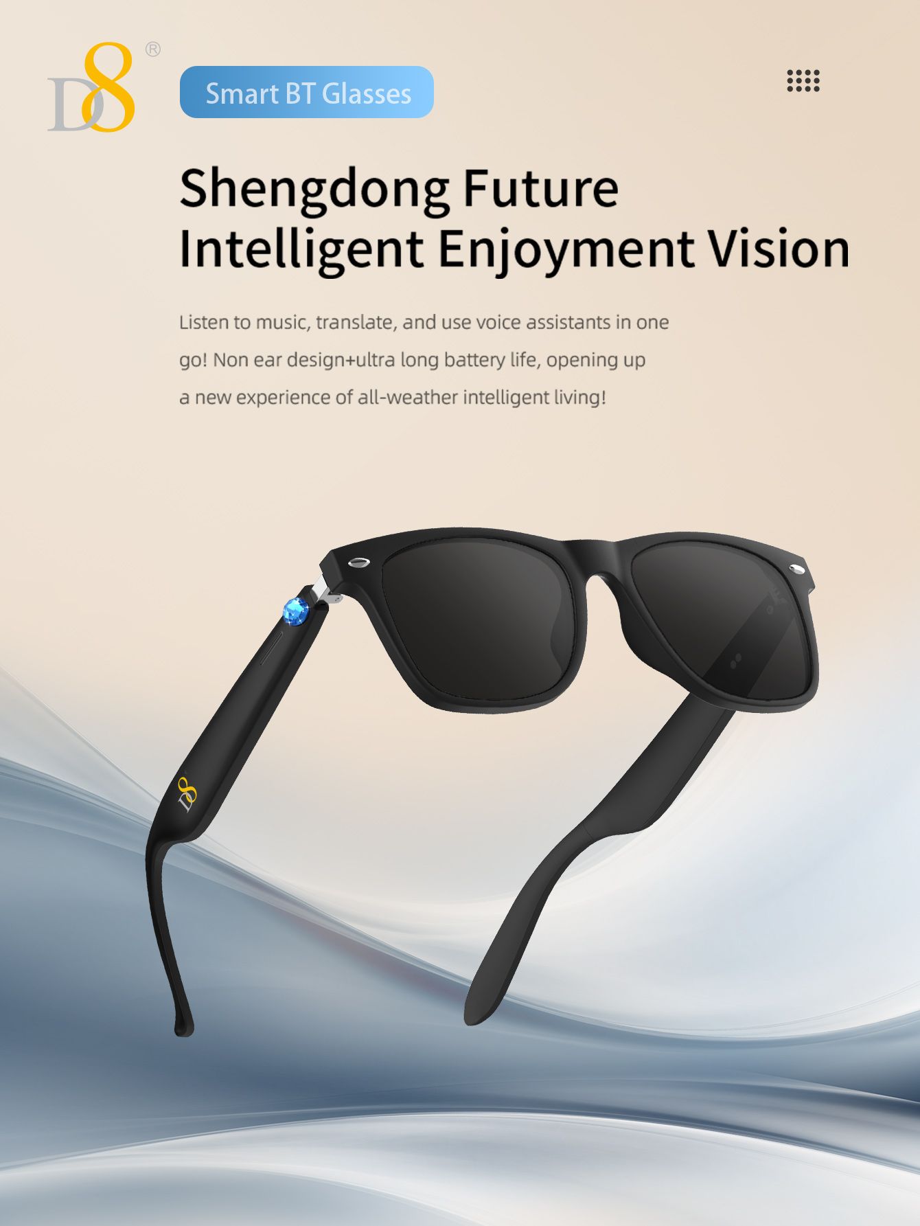 Smart Translation Glasses (Intelligent Interaction, Semi Open Listening, Fashion Sunglasses Design, Black)