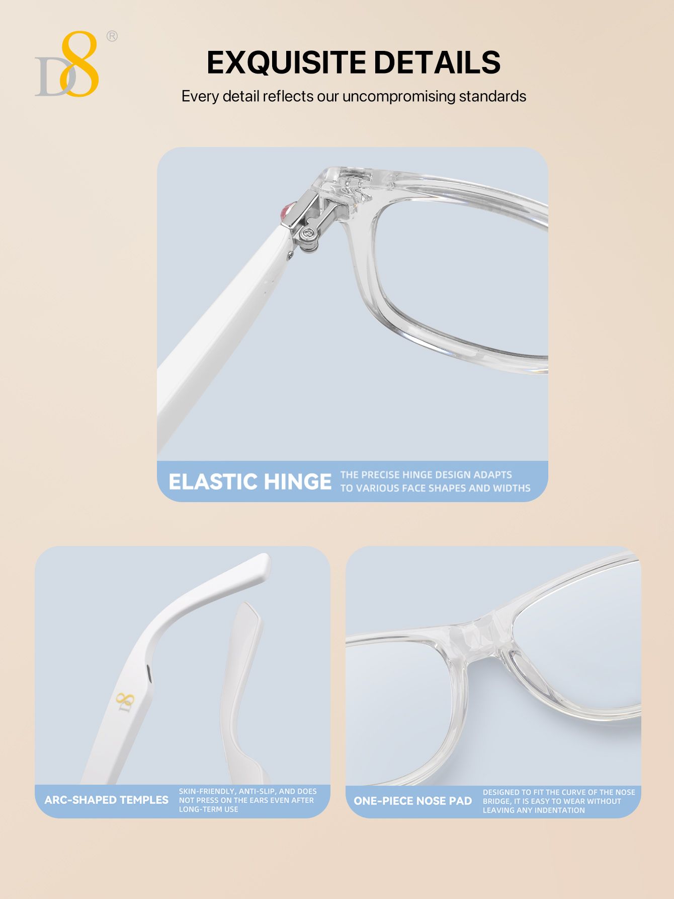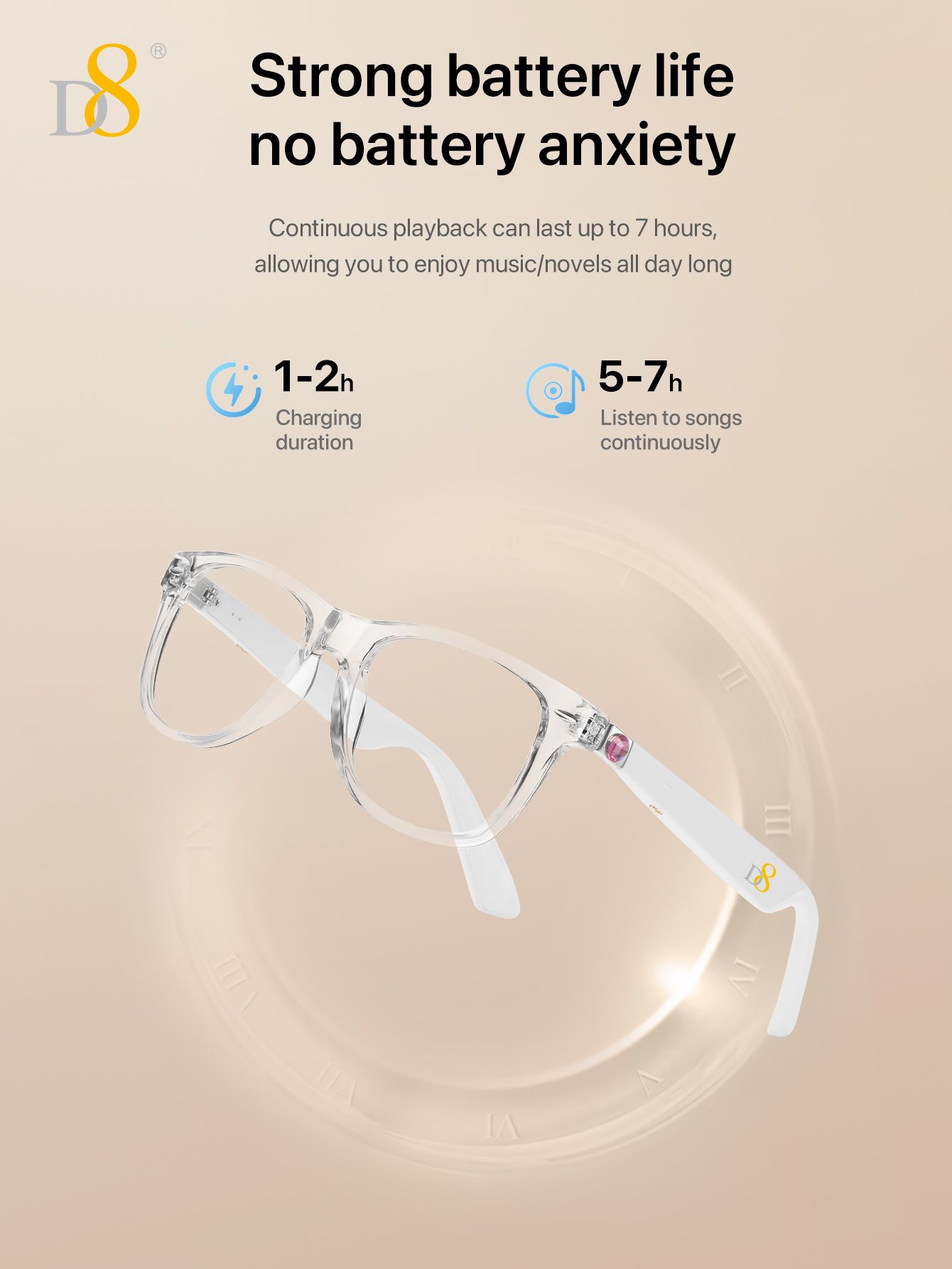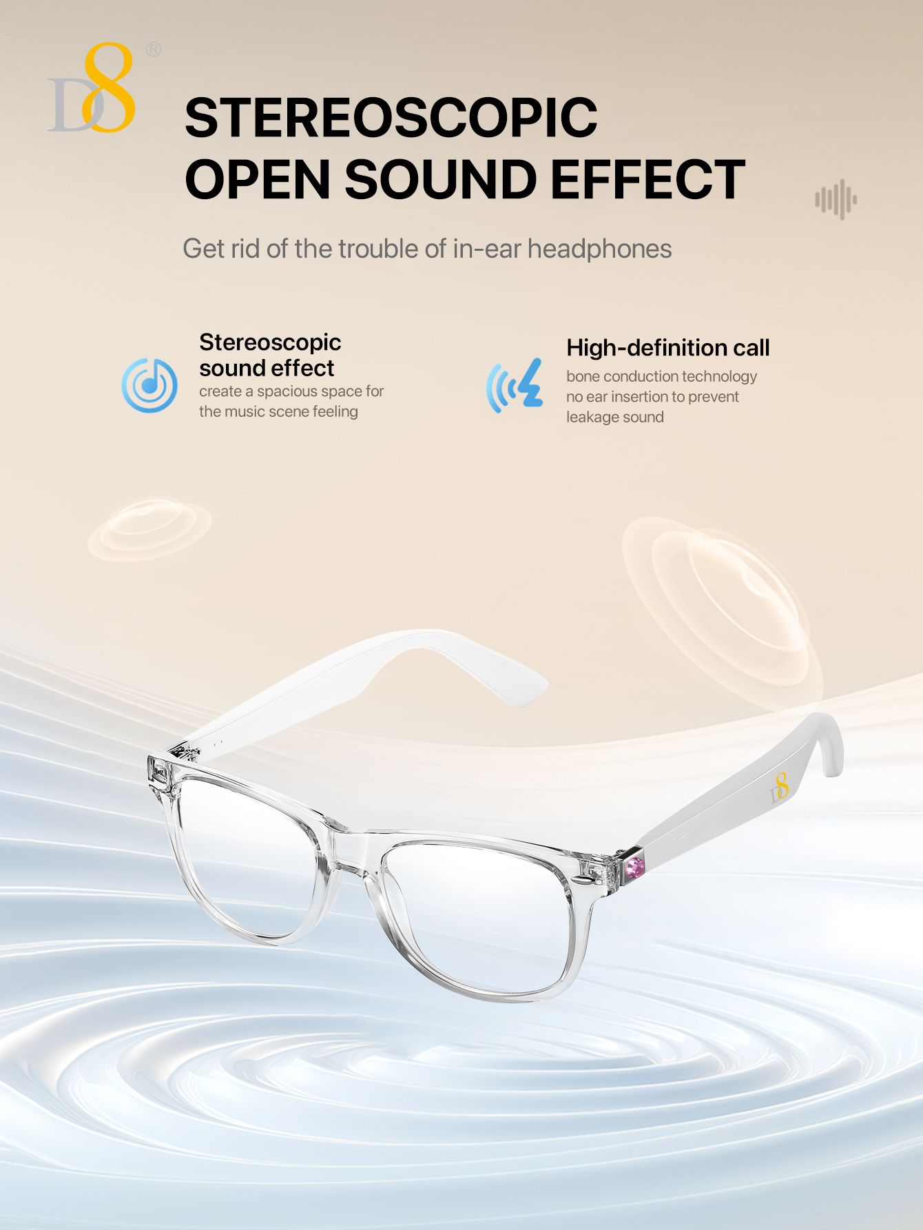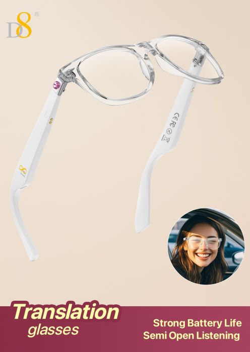 Translation Smart Glasses (Strong Battery Life, Semi Open Listening, Transparent Frame Design, White)