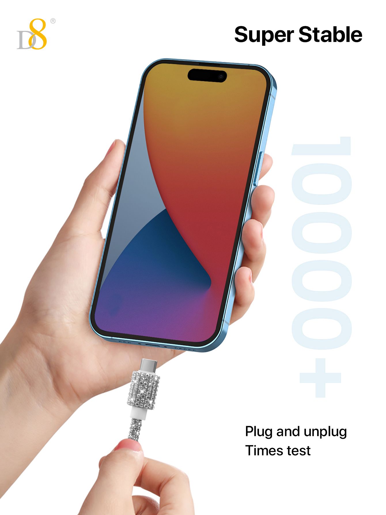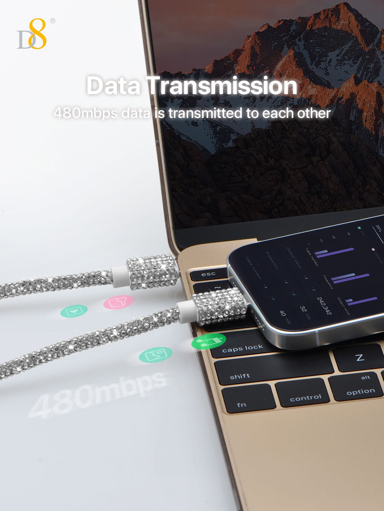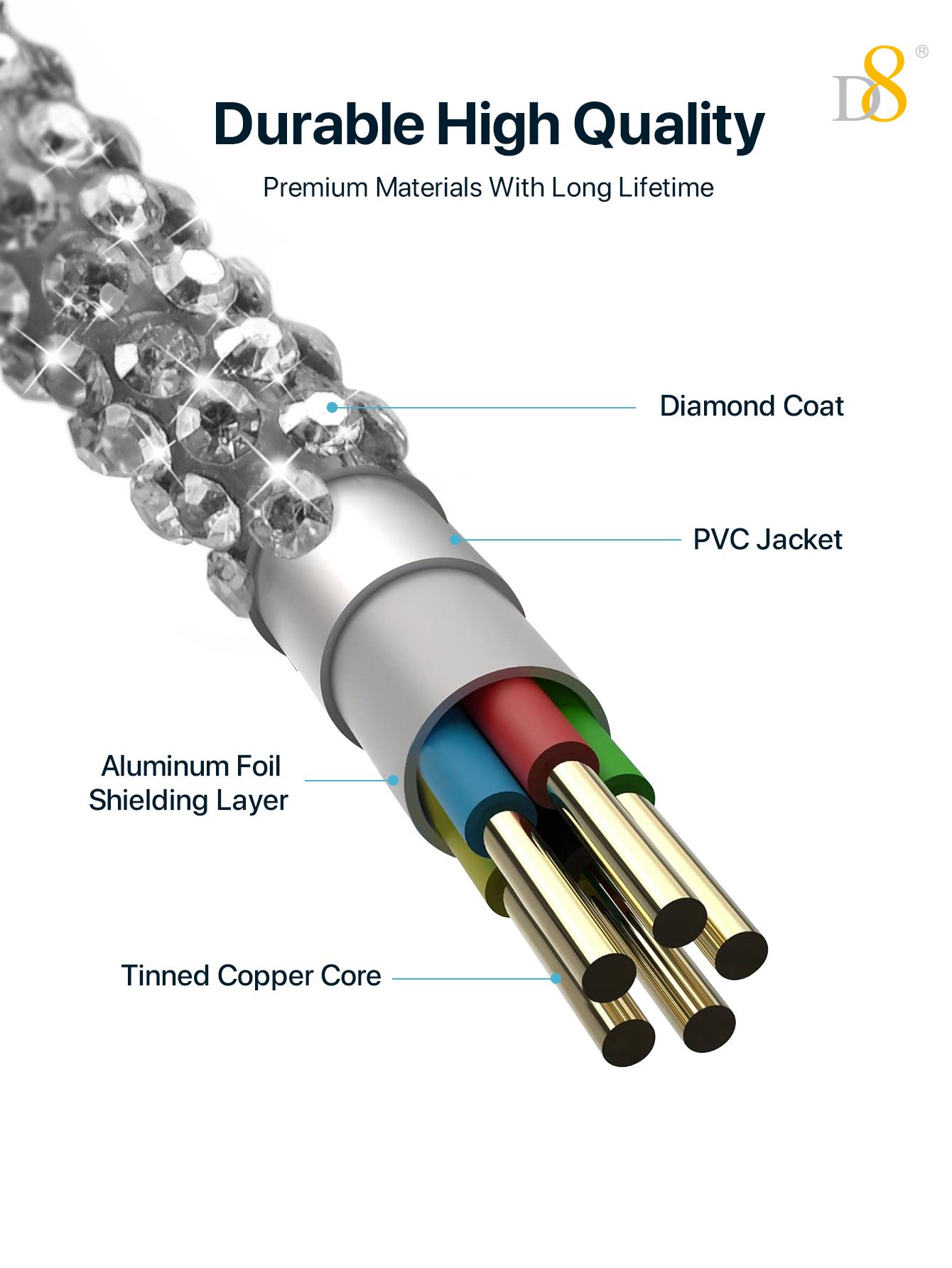 60W Fast Charging USB-C to USB-C Cable (Diamond-Encrusted Design, Shining Appearance, Compatible with iPhone 15, Silver)