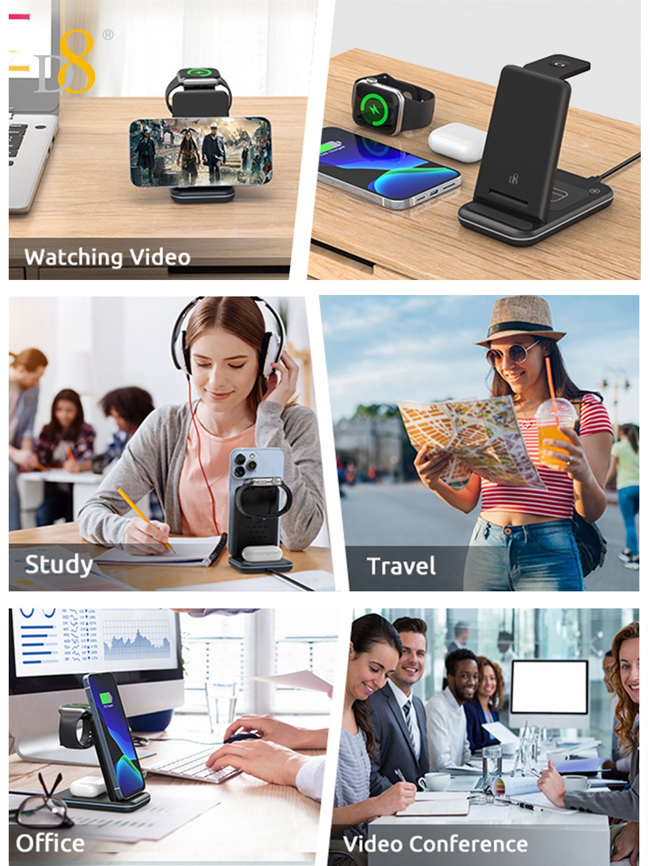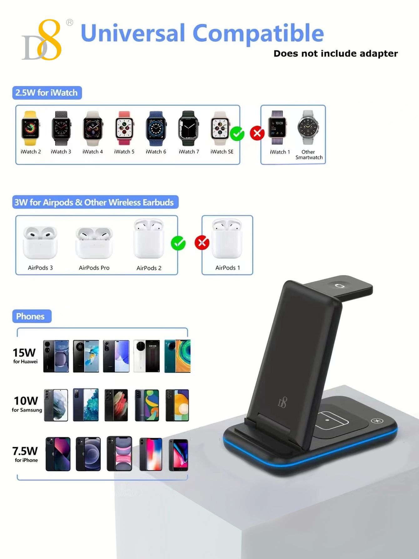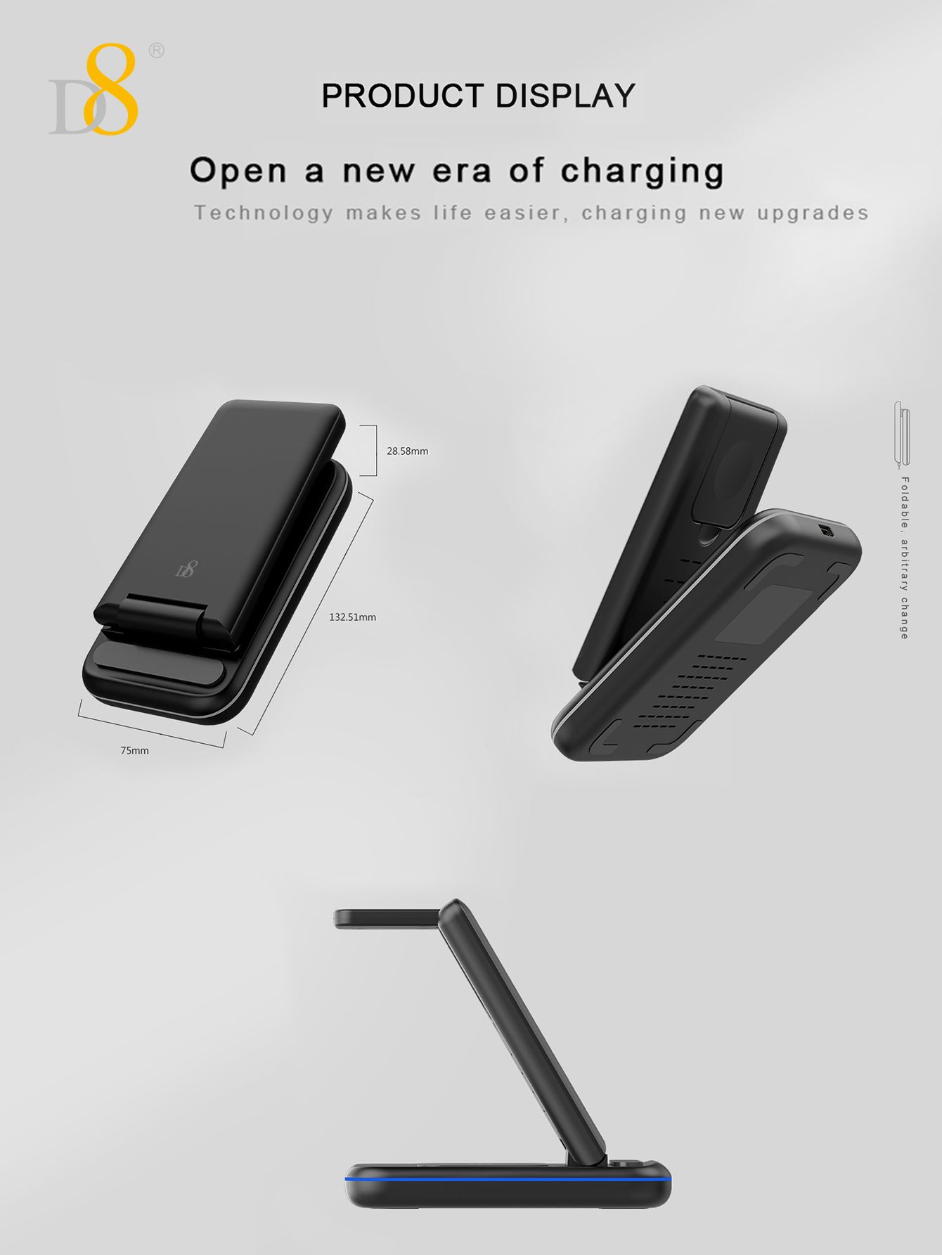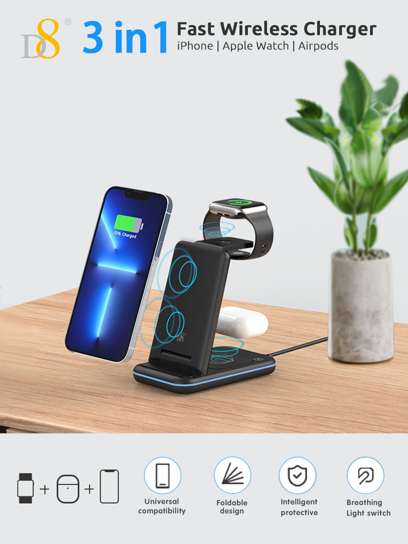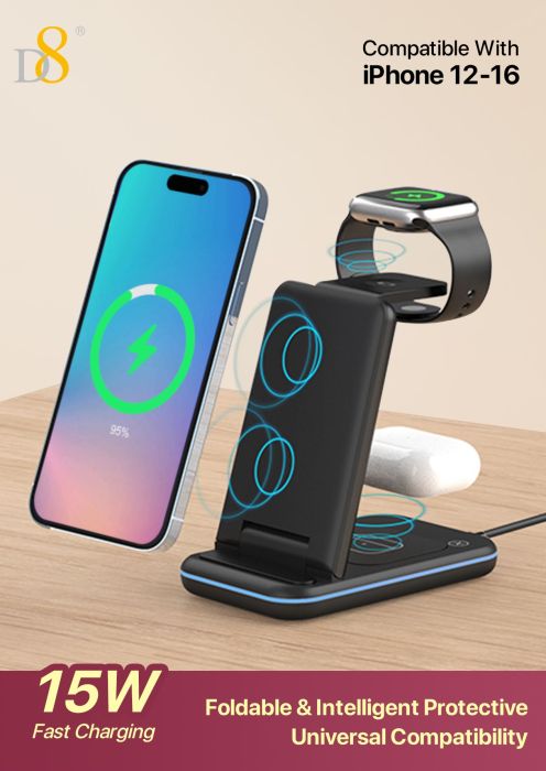 15W Foldable 3-in-1 Wireless Charger (Compatible with iPhone 12-16, iWatch & AirPods, Black)