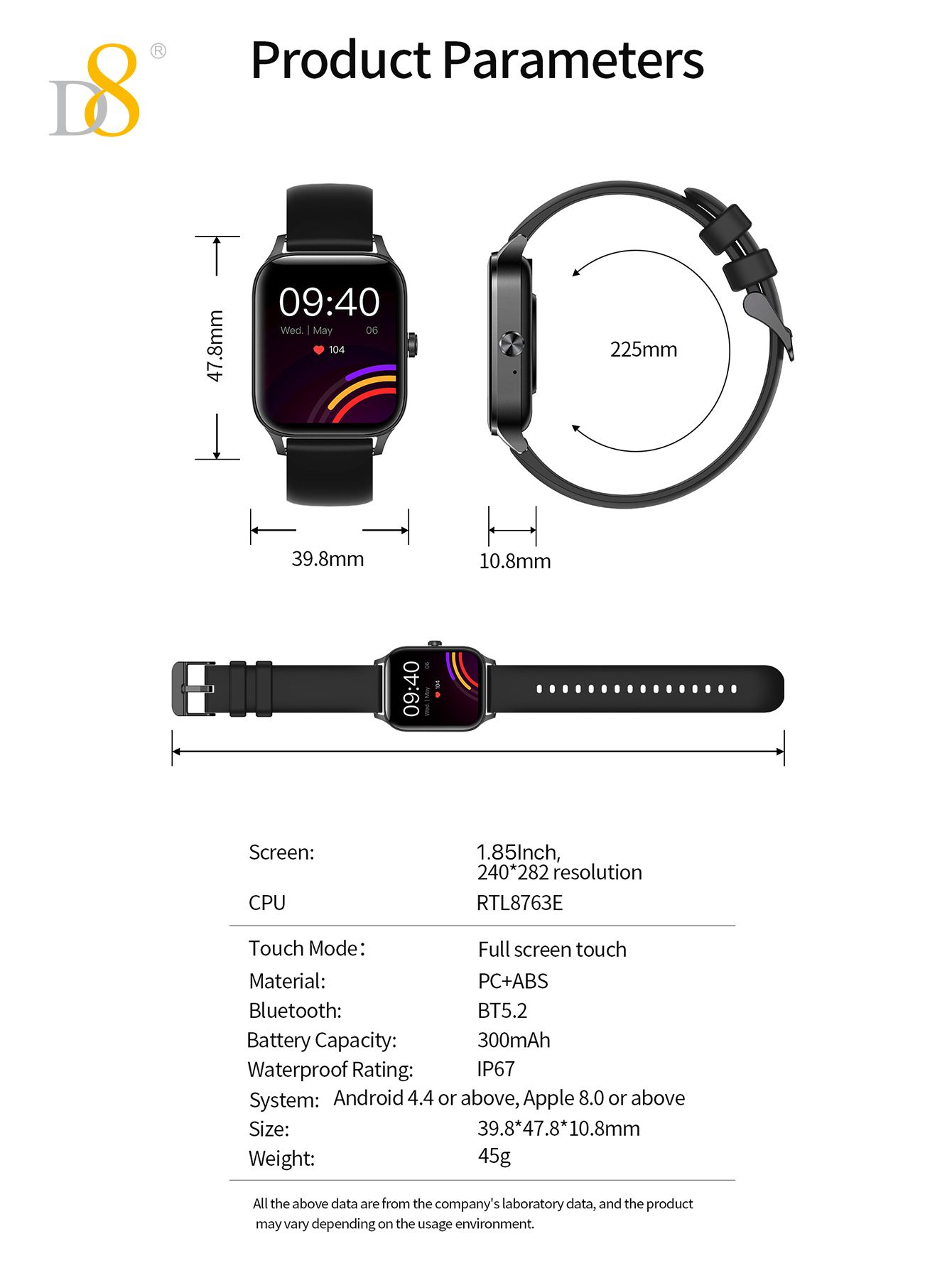 1.85" TFT Large Screen 20-day Battery Life IP68 Waterproof Smart Watch (Silicone Strap, Fashion Women's Style)