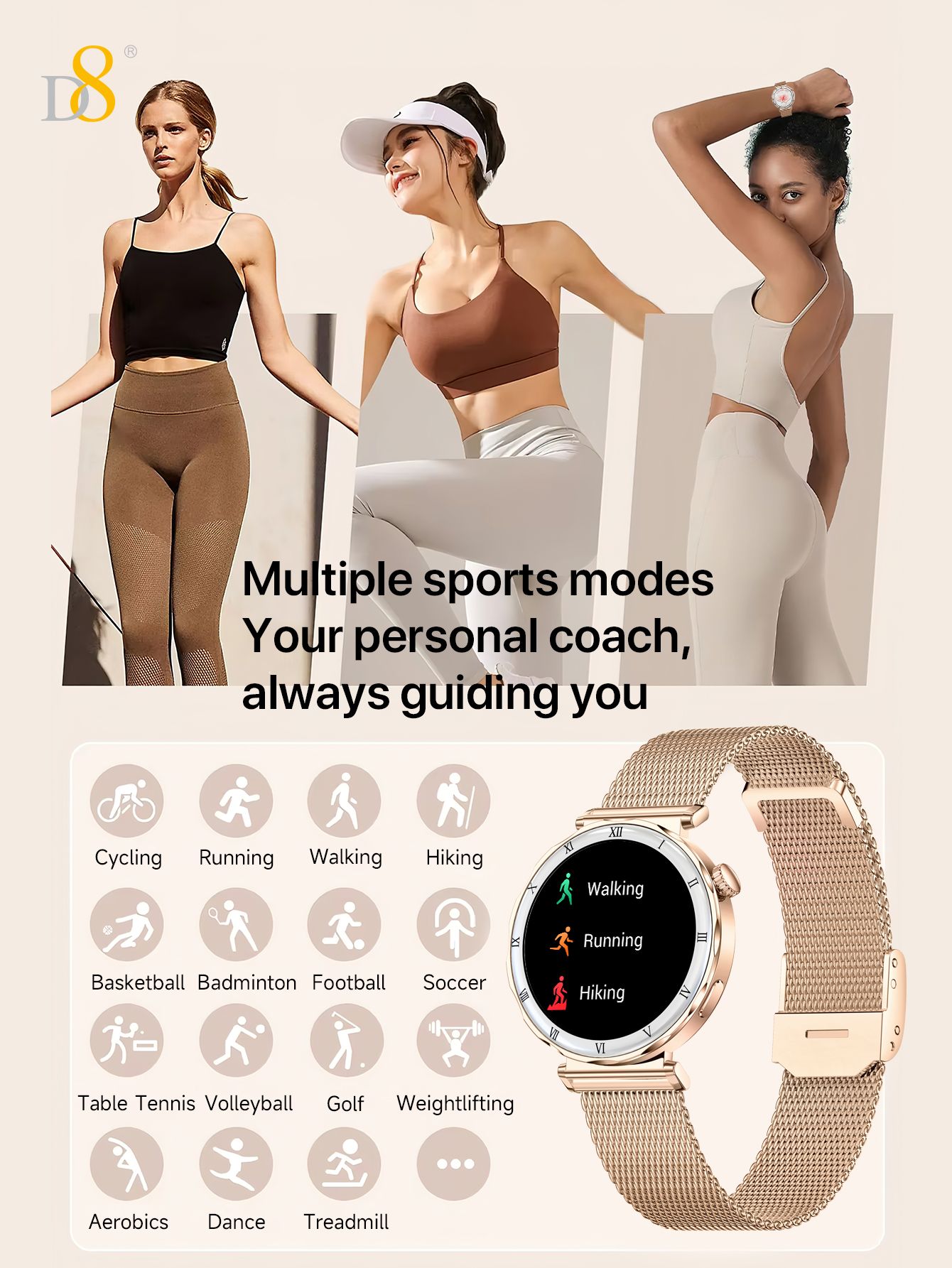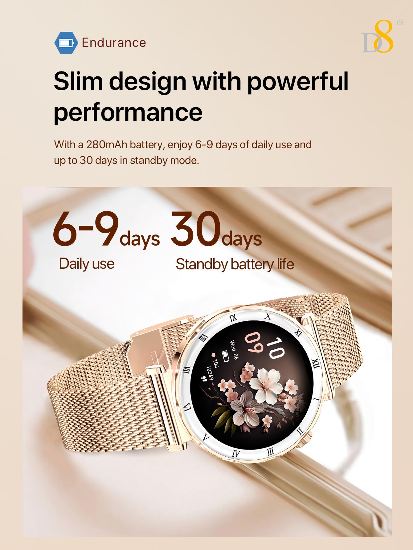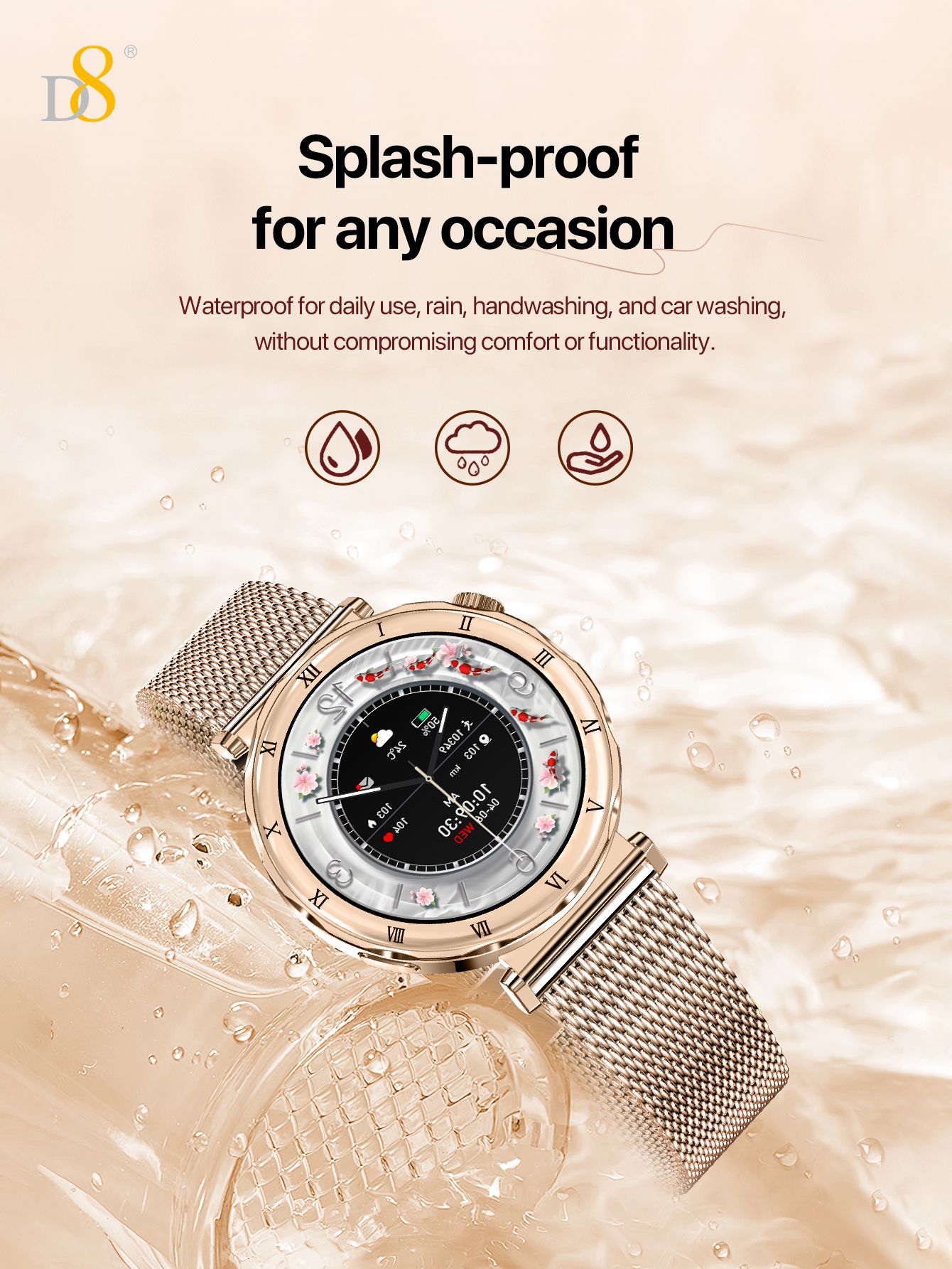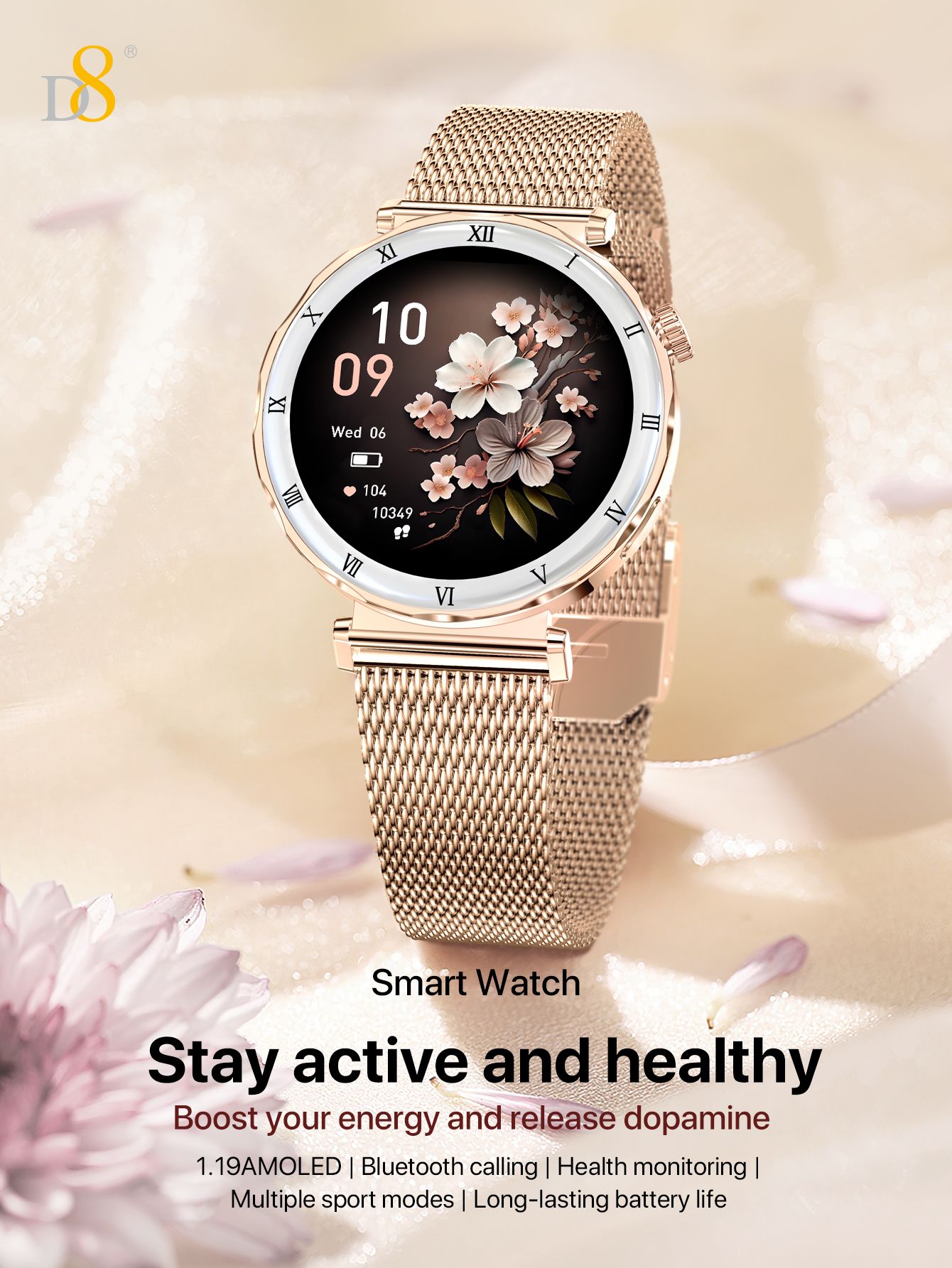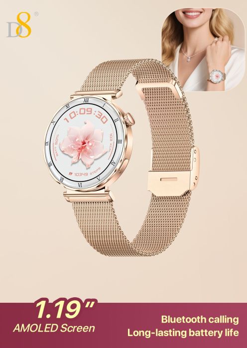 1.19" AMOLED Screen Bluetooth Calling Smart Watch (Gold Mesh Strap, Women's Fashion Style)
