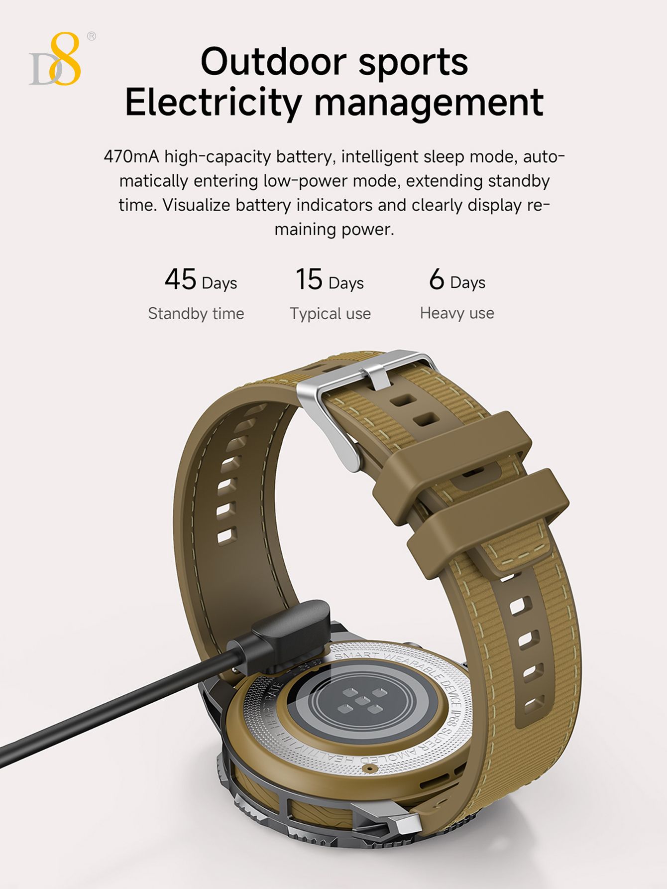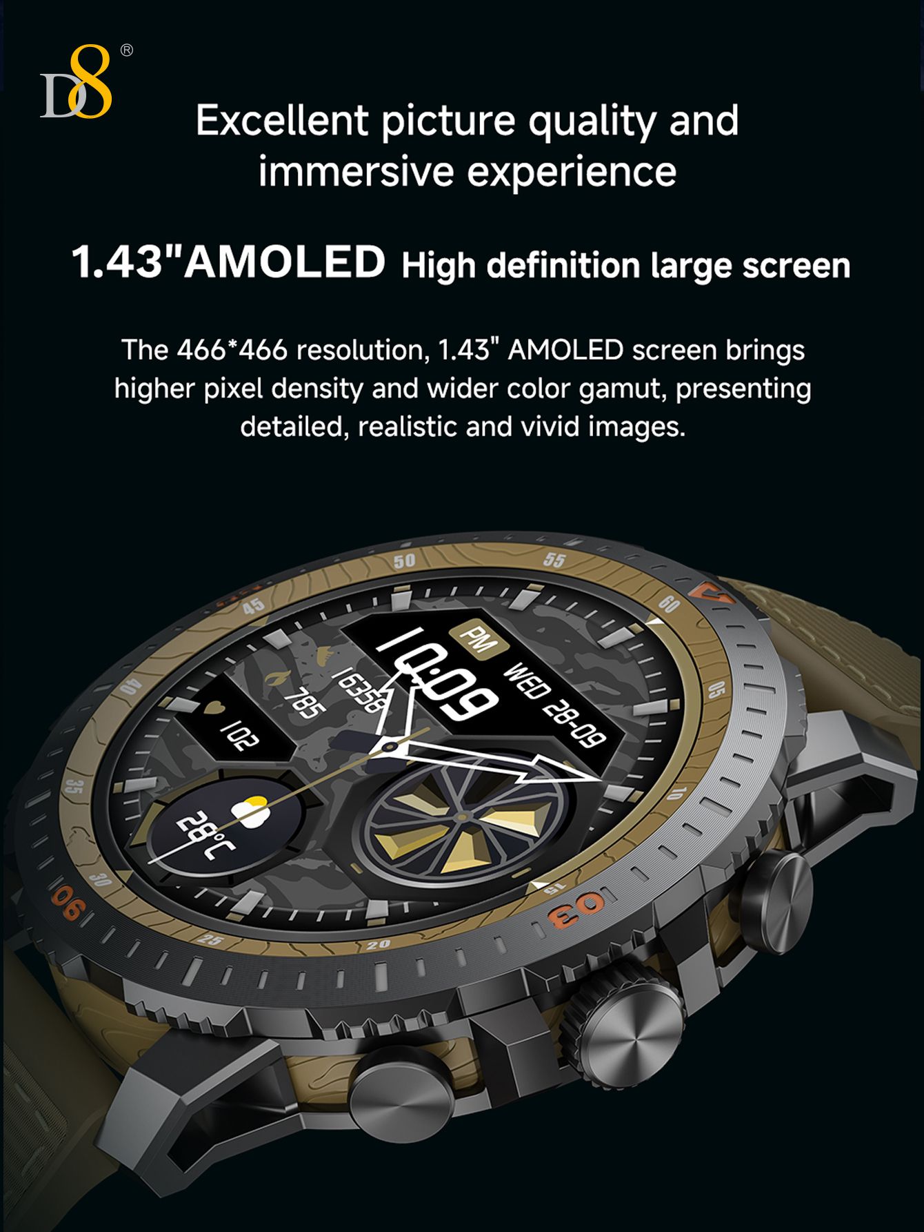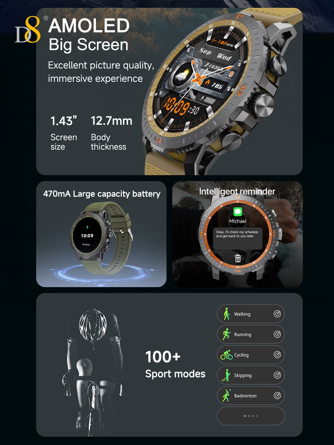 1.43" AMOLED Screen Sports Smart Watch (470mAh Large Battery, 12.7mm Thin Body, Blue Strap)