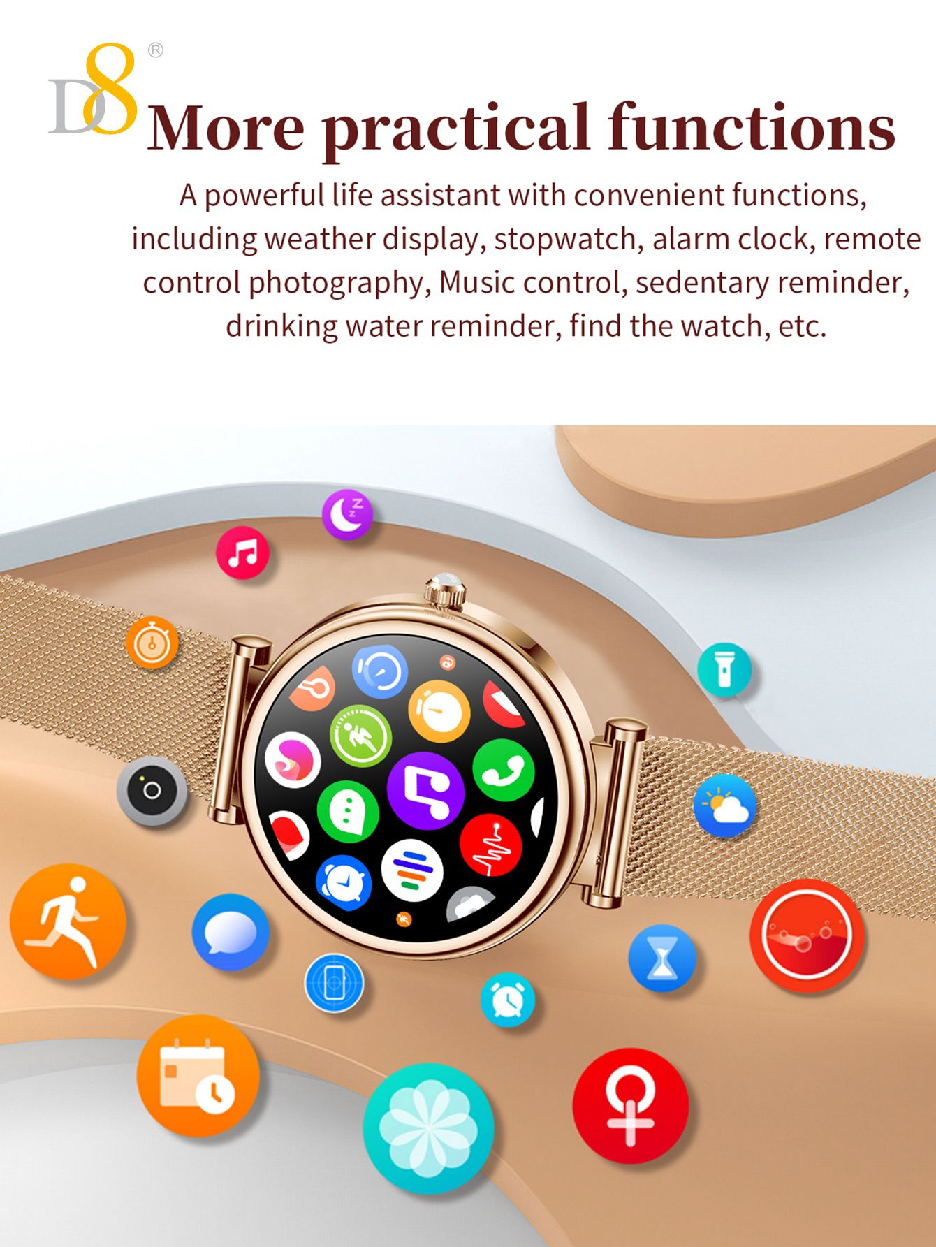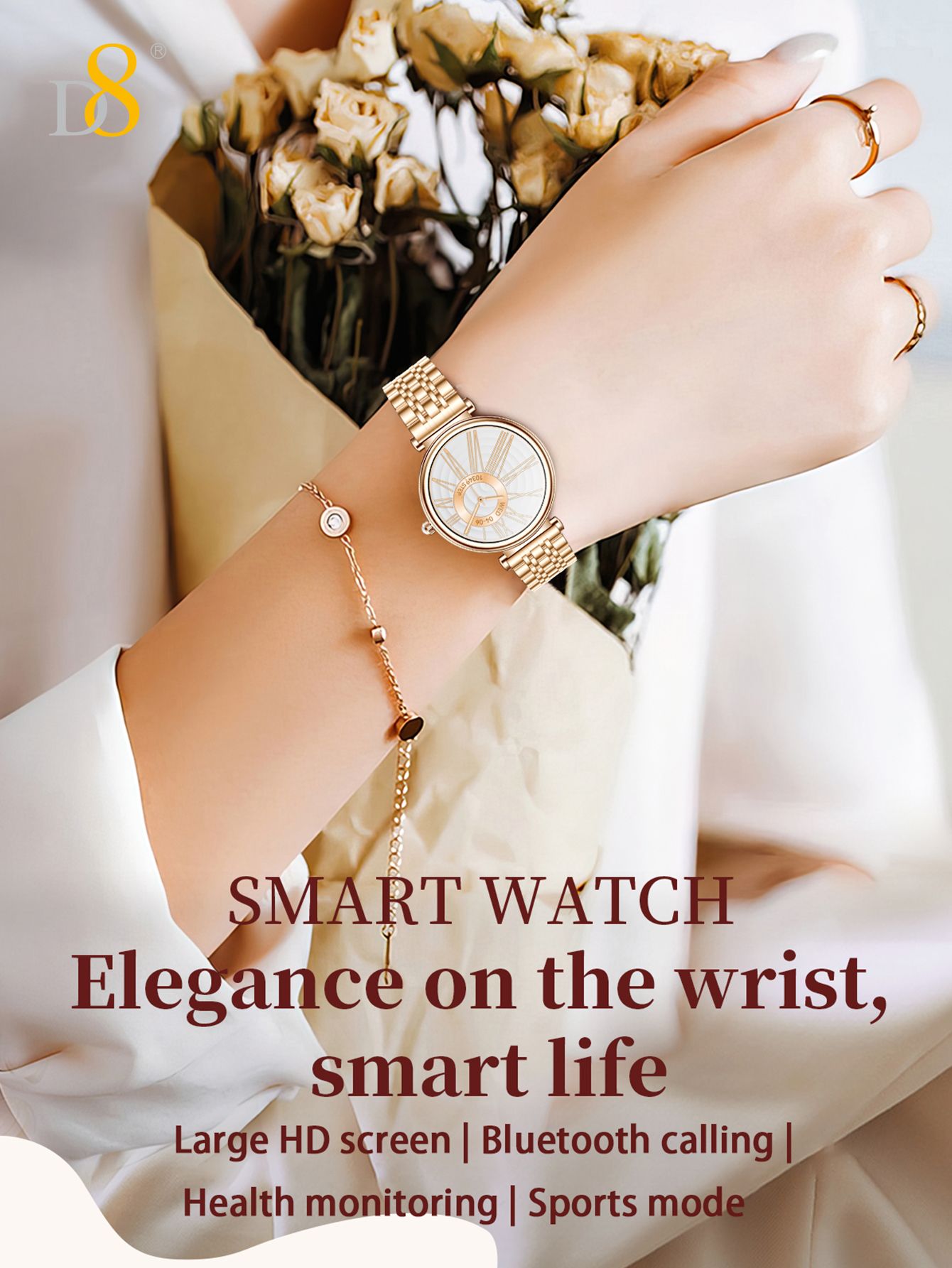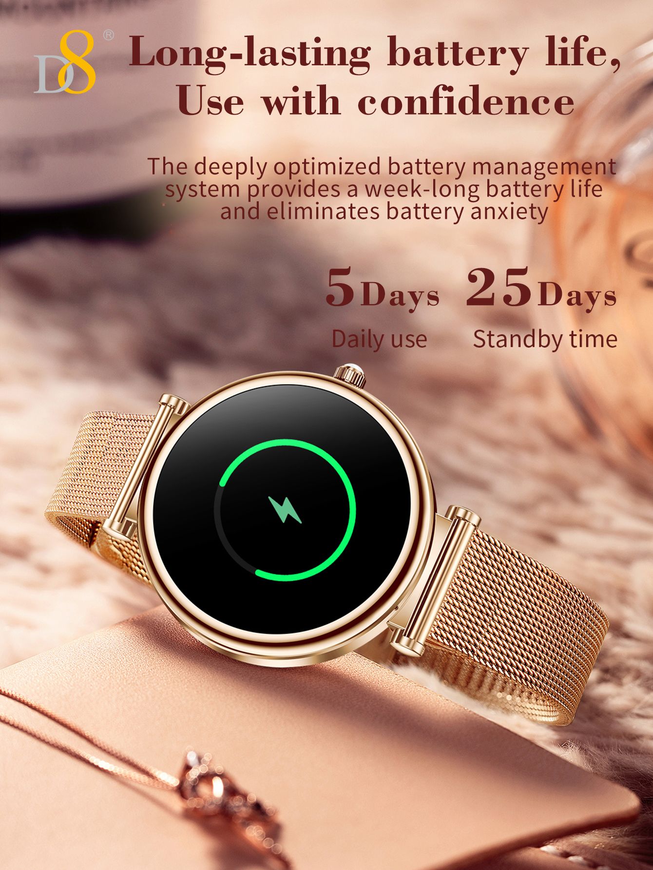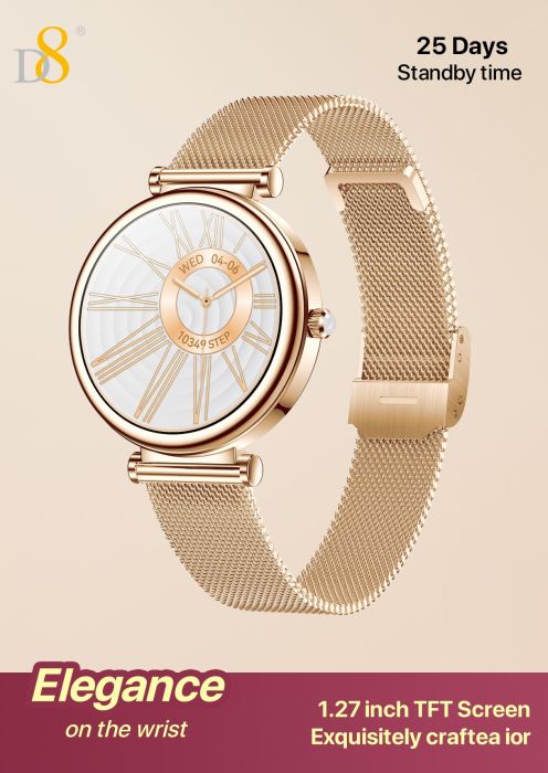 1.27" TFT Screen Elegant Smart Watch (25 Days Standby, Gold Mesh Strap)