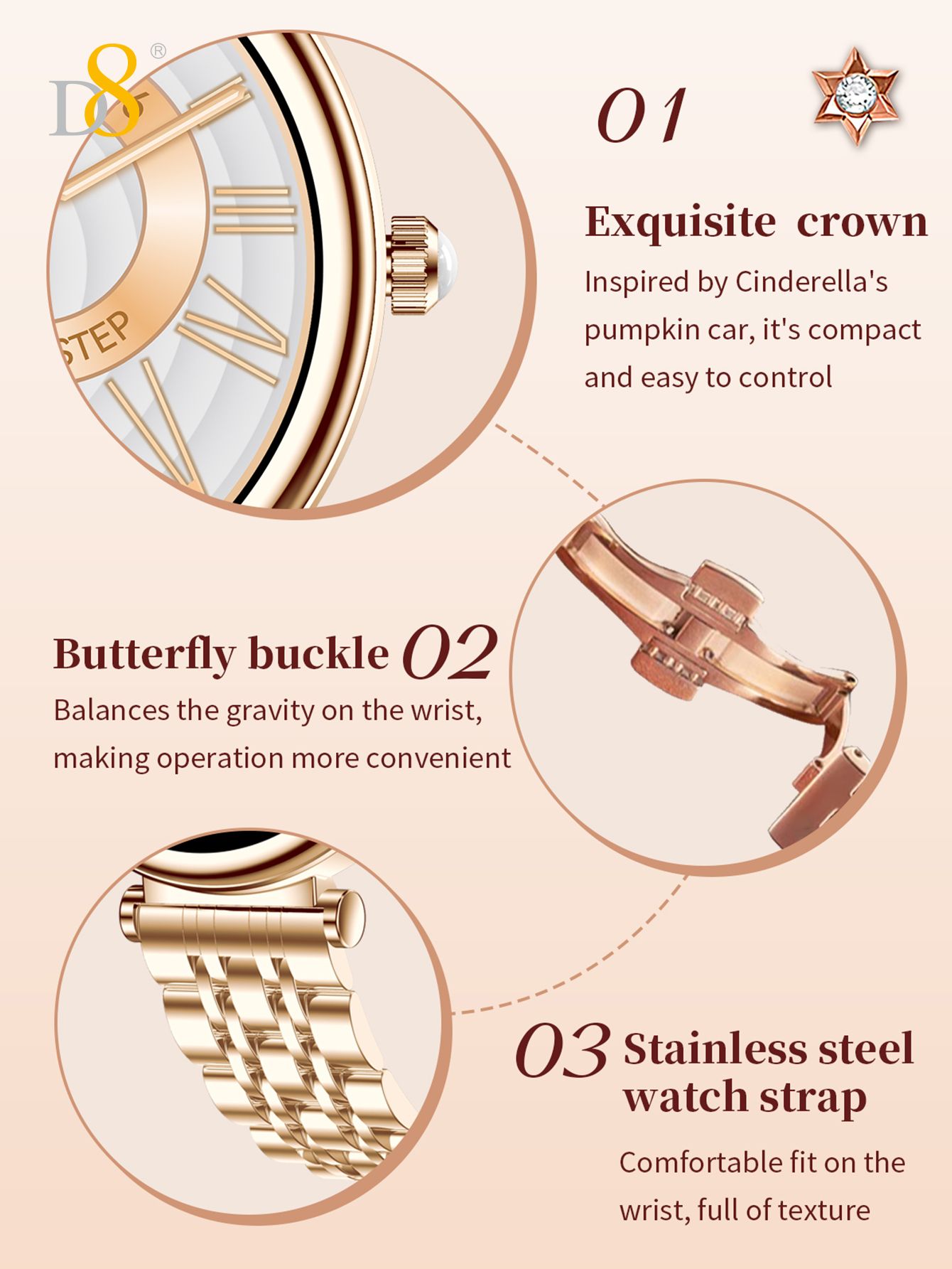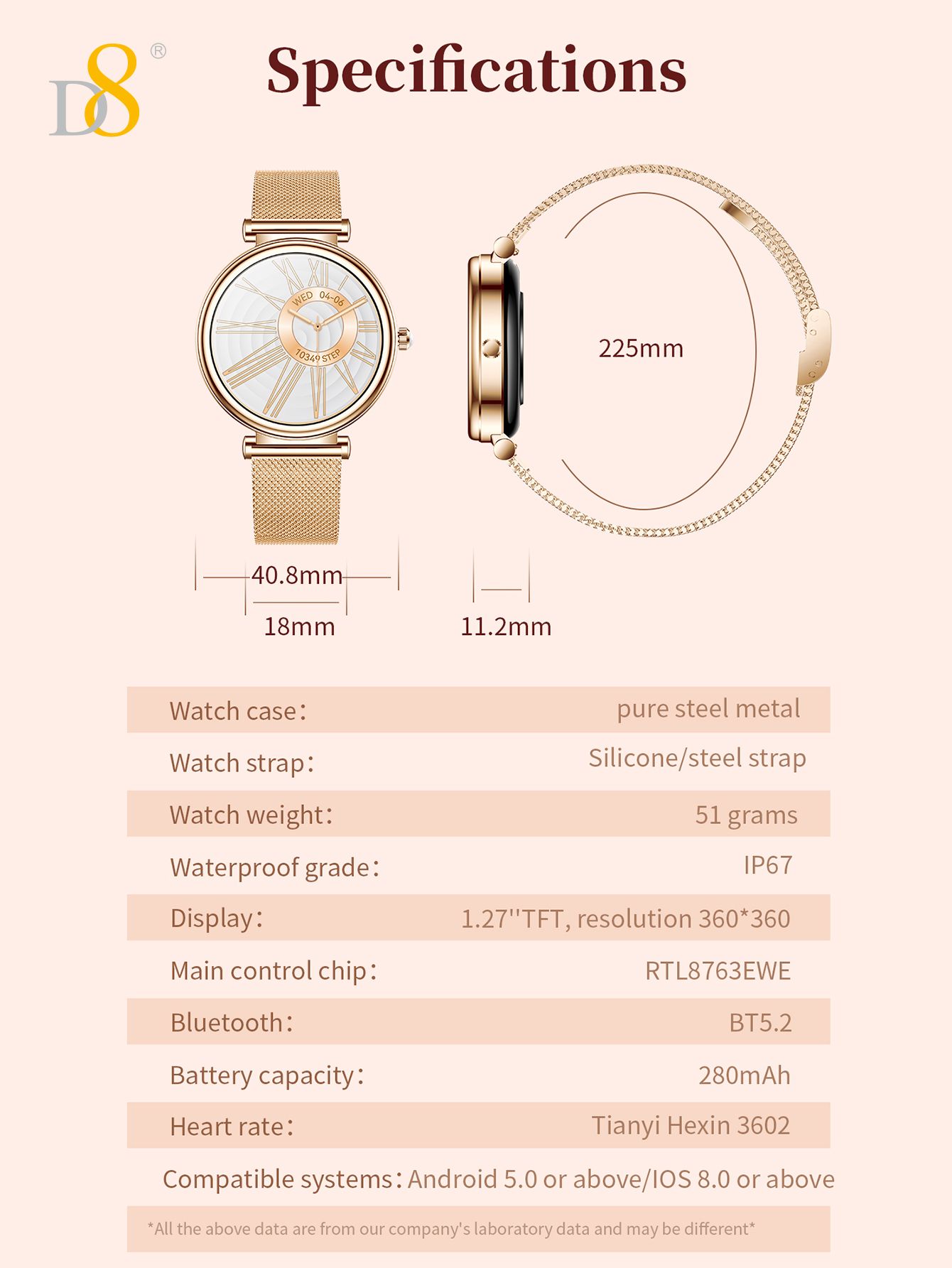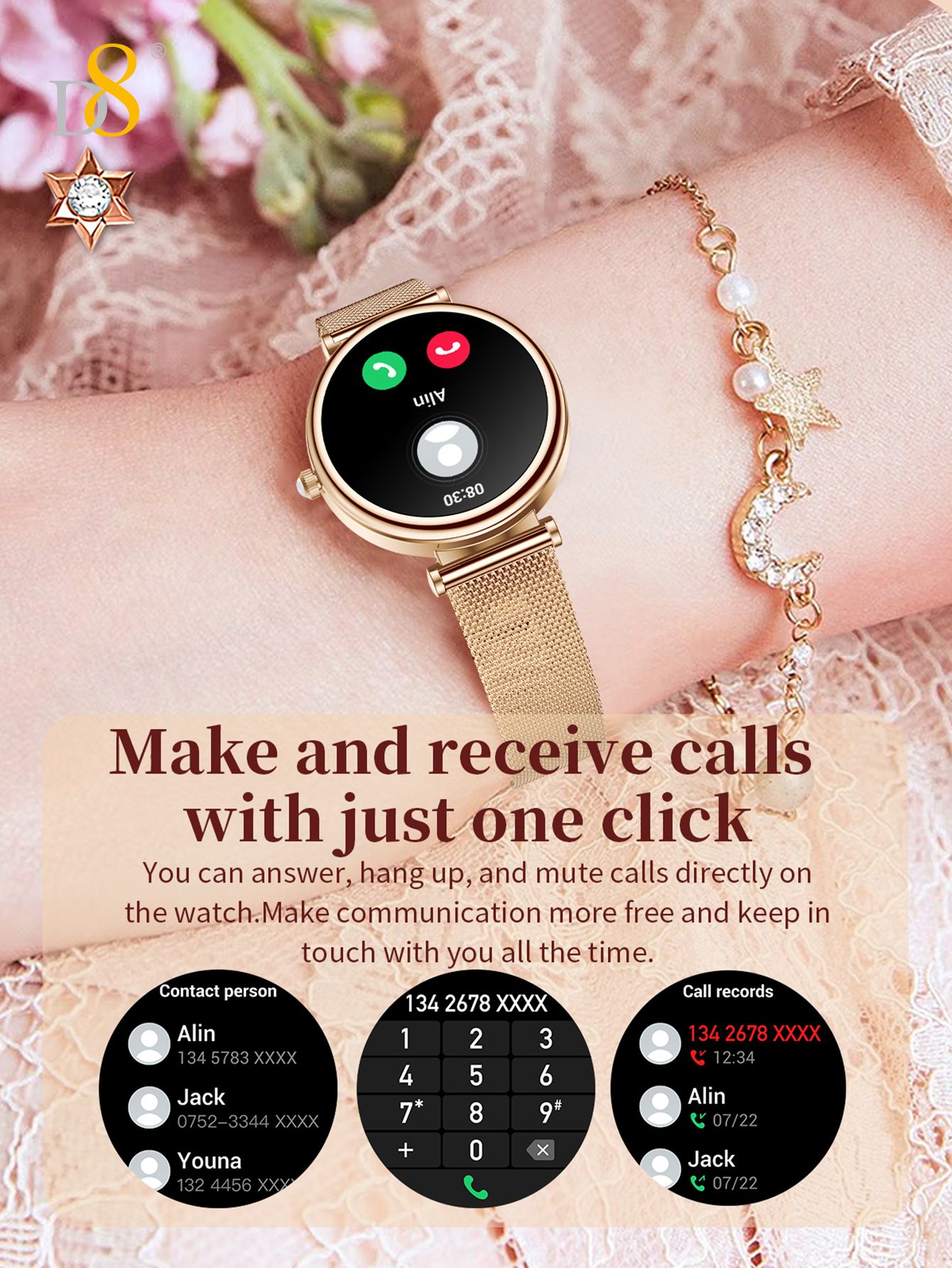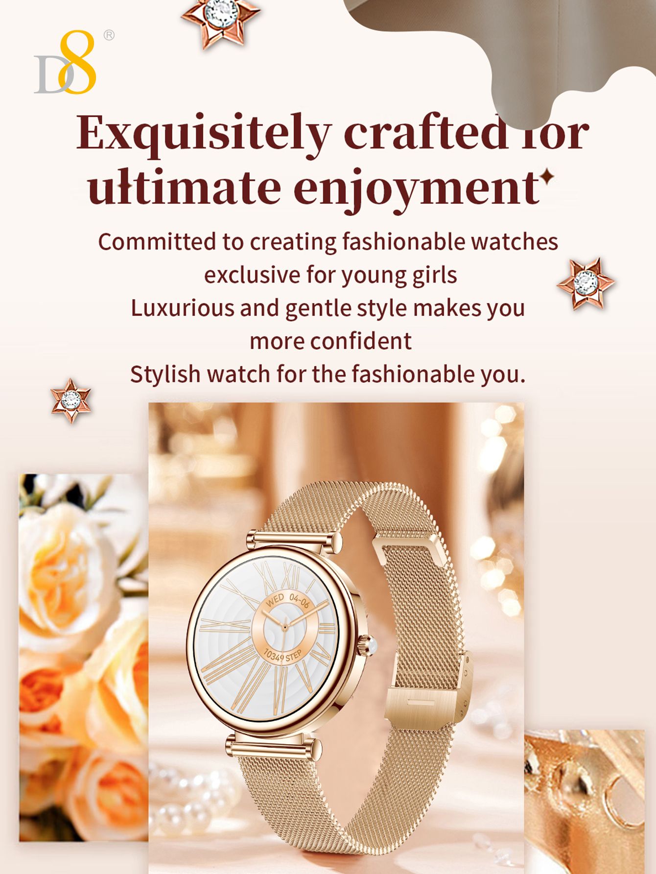 1.27" TFT Screen Elegant Smart Watch (25 Days Standby, Gold Mesh Strap)