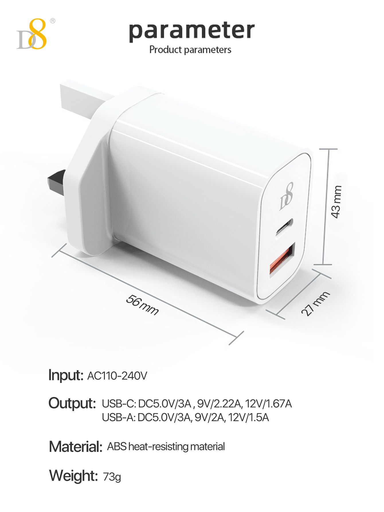 20W Dual-Port Fast Charger (USB-C + A, UK Plug)
