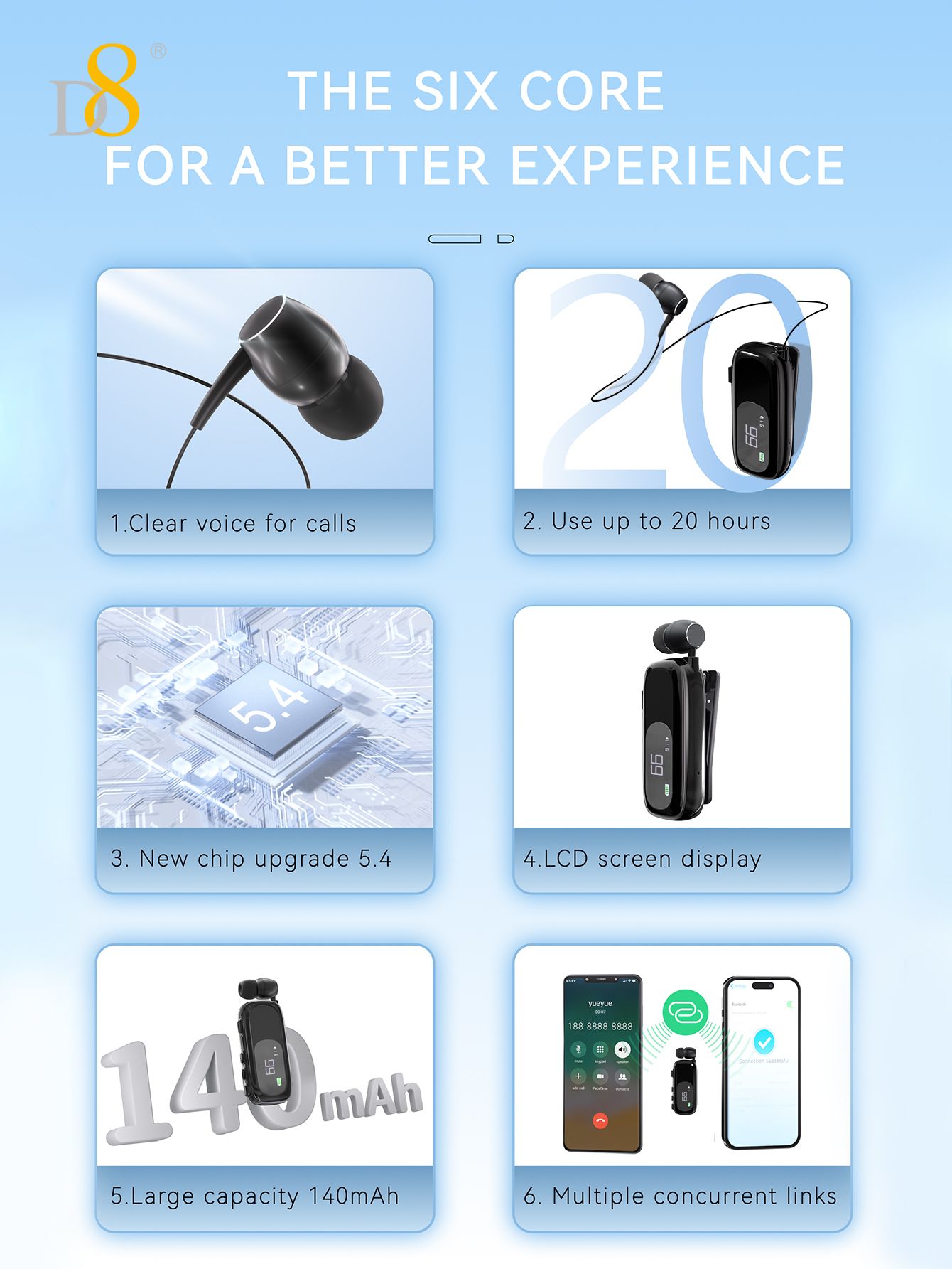 Bluetooth Collar Clip Headset (LCD Display, 20H Music Time, Lapel Clip Design, One-Click Shrinkage, Black)