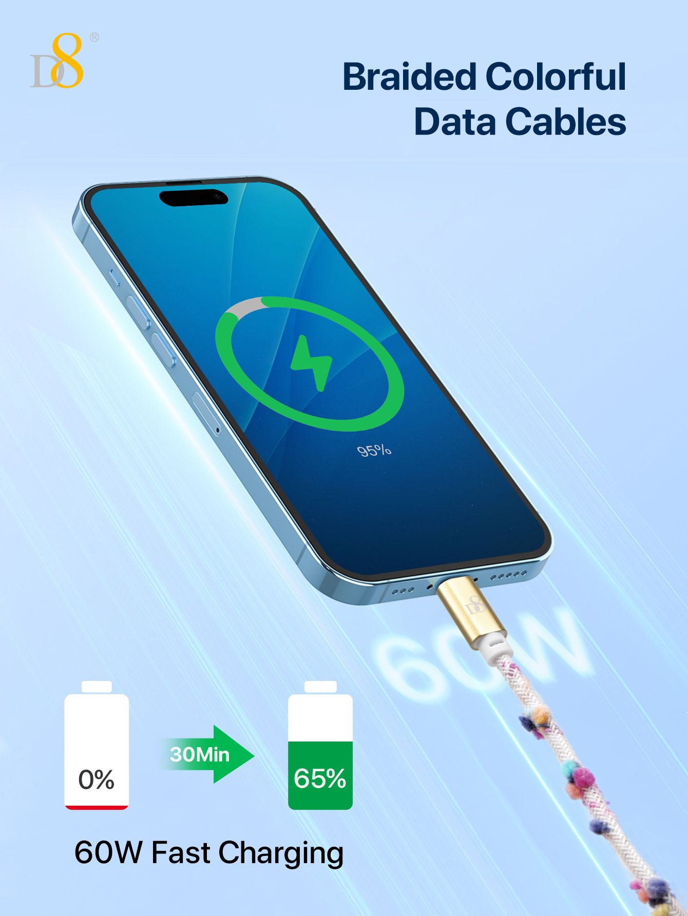 60W Fast Charging USB-C to USB-C Cable (Wool Soft Material, Colorful Pom-Pom Design, 480Mbps Transfer, Compatible with iPhone 15, White)