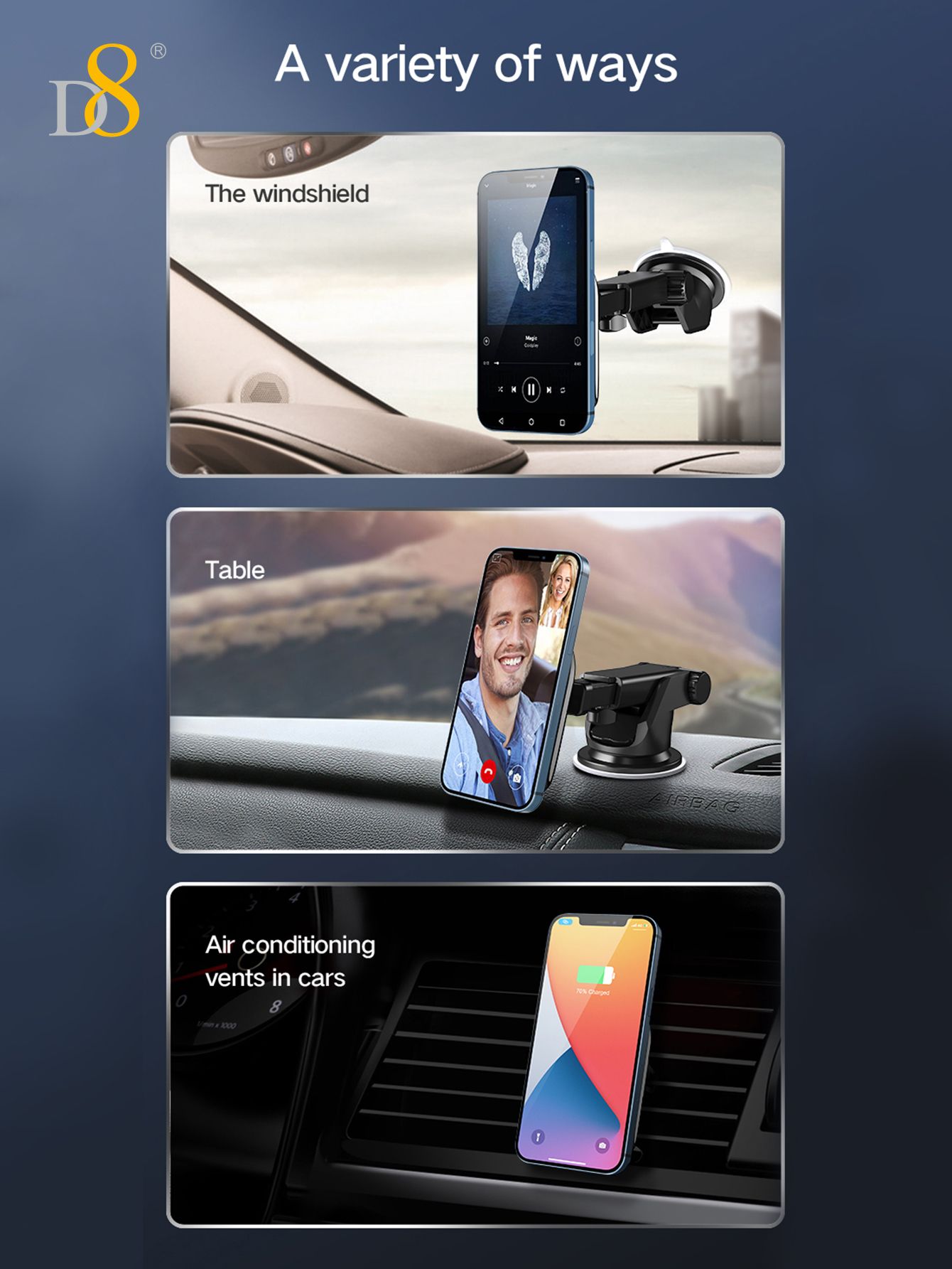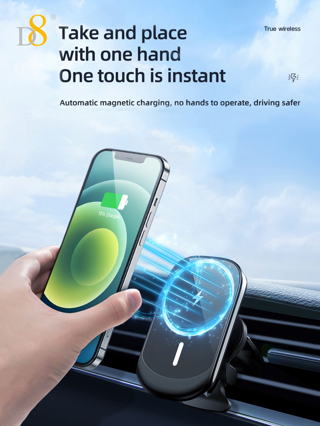 15W Magnetic Wireless Car Charger Mount (Tail Clip Design, Compatible with iPhone 15, Black)